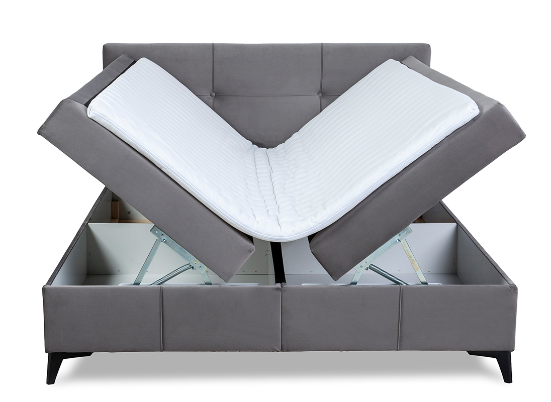 Wnętrze łóżka zostało wyposażone w wkład bonellowy, gwarantujący doskonałe podparcie dla Twojego ciała podczas snu. Dodatkowo, w komplecie znajduje się topper z pianki PU T25 o grubości 3 cm, który podnosi komfort użytkowania. Topper wraz z dzianiną przepikowana ma wysokość 4 cm, pokrowiec można łatwo zdjąć i prać w pralce w temperaturze 40 stopni, co zapewnia łatwą pielęgnację i długotrwałą świeżość produktu.