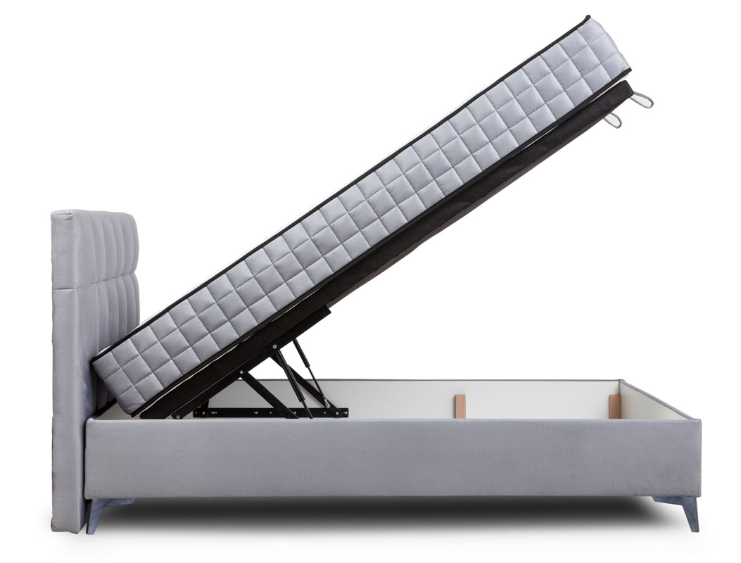 Jedną z kluczowych cech łóżka Carino jest siłownik gazowy, który umożliwia łatwe podnoszenie zagłówka, ułatwiając dostęp do przestronnego pojemnika na pościel. Ten innowacyjny mechanizm sprawia, że korzystanie z dodatkowej przestrzeni do przechowywania staje się wygodne i efektywne.