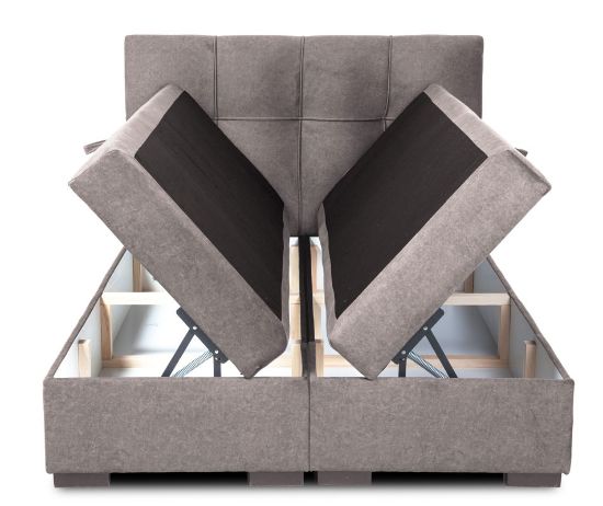 Model ten posiada dwa pojemniki na pościel z automatem wspomagającym rozkładanie, co ułatwia dostęp do przestrzeni przechowywania i pomaga utrzymać porządek w sypialni.
