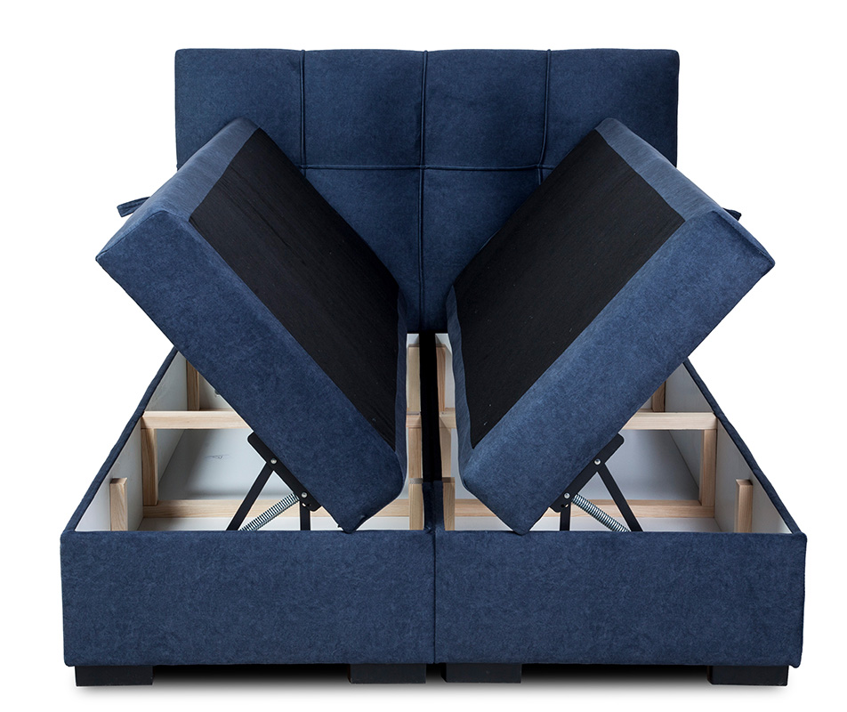Model ten posiada dwa pojemniki na pościel z automatem wspomagającym rozkładanie, co ułatwia dostęp do przestrzeni przechowywania i pomaga utrzymać porządek w sypialni.