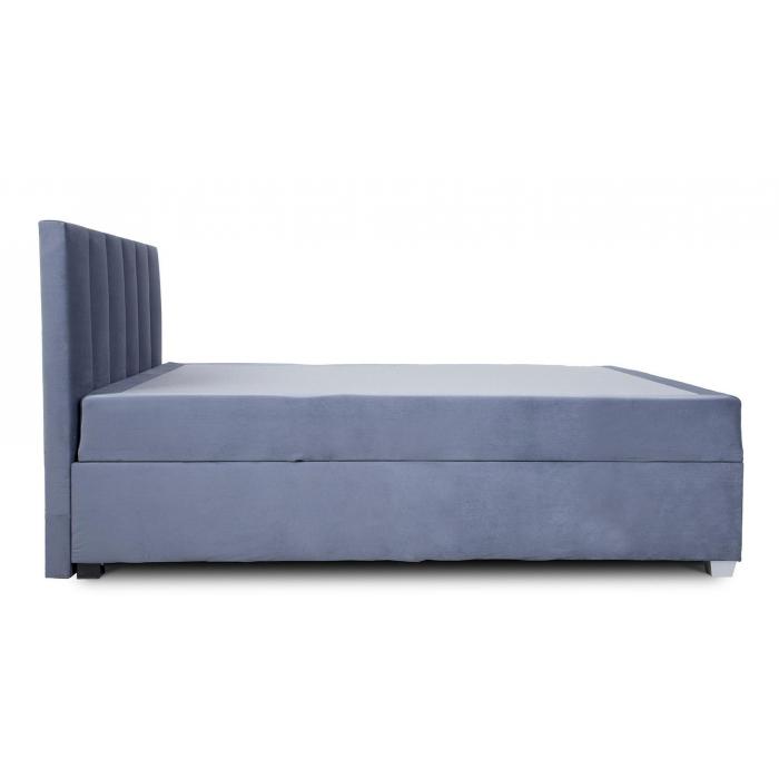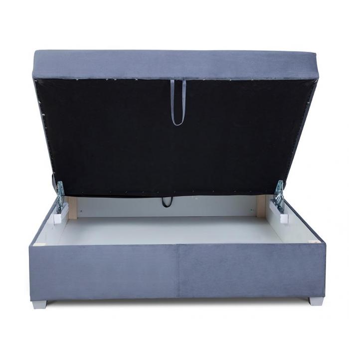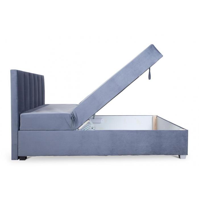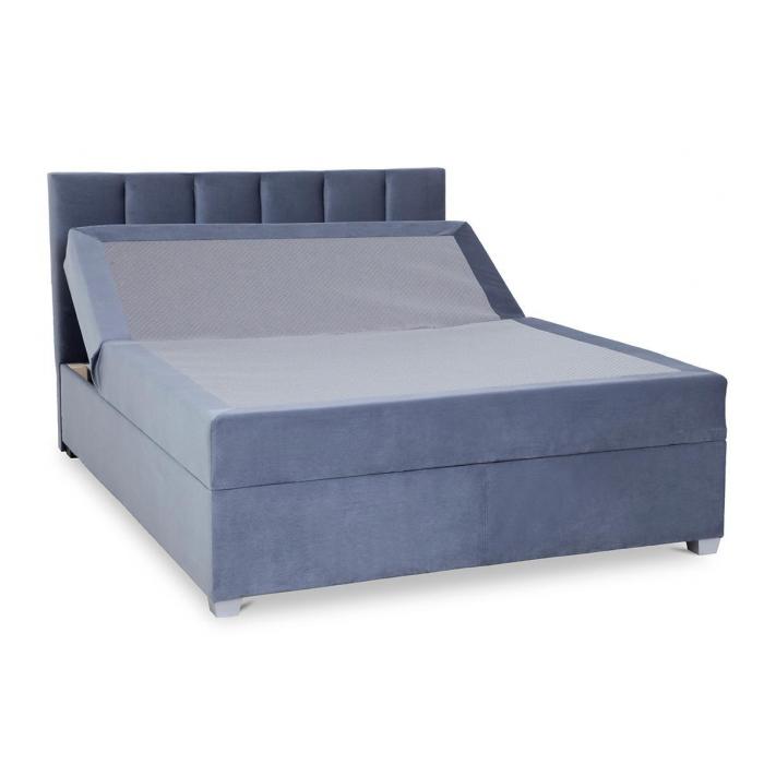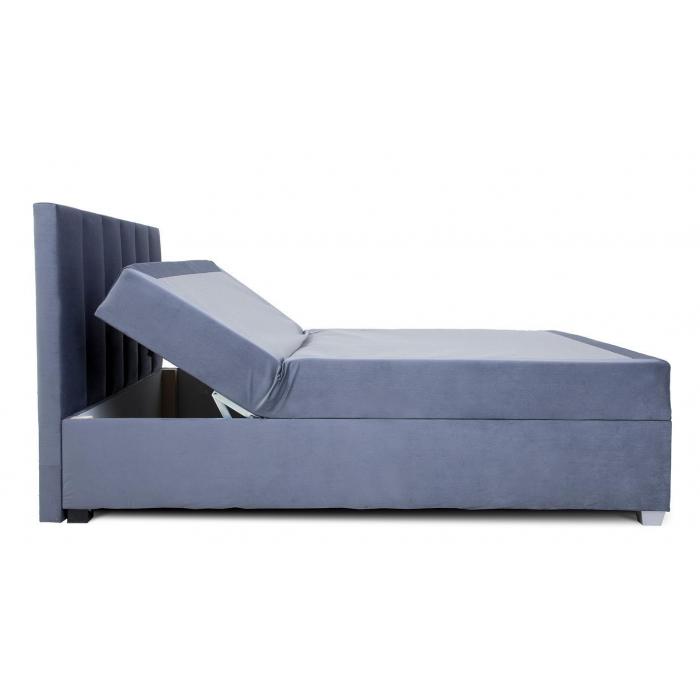 Cena obejmuje materac typu bonell na ramie drewnianej, pojemnik na pościel, podnośnik łamany. Łóżko posiada regulowany zagłówek do 4 pozycji, co znacznie podnosi komfort użytkowania mebla. Skrzynia i zagłowie tapicerowane tkanina Swing w kolorze popielatym, w materacu wszyta została tkanina antypoślizgowa typu fibertex. Jako element dekoracyjny zostały zastosowane ozdobne przeszycia na zagłowiu. Powierzchnia spania wynosi 160x200cm. Nóżki wykonane z drewna w kolorze srebrnym.