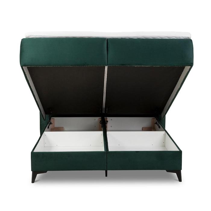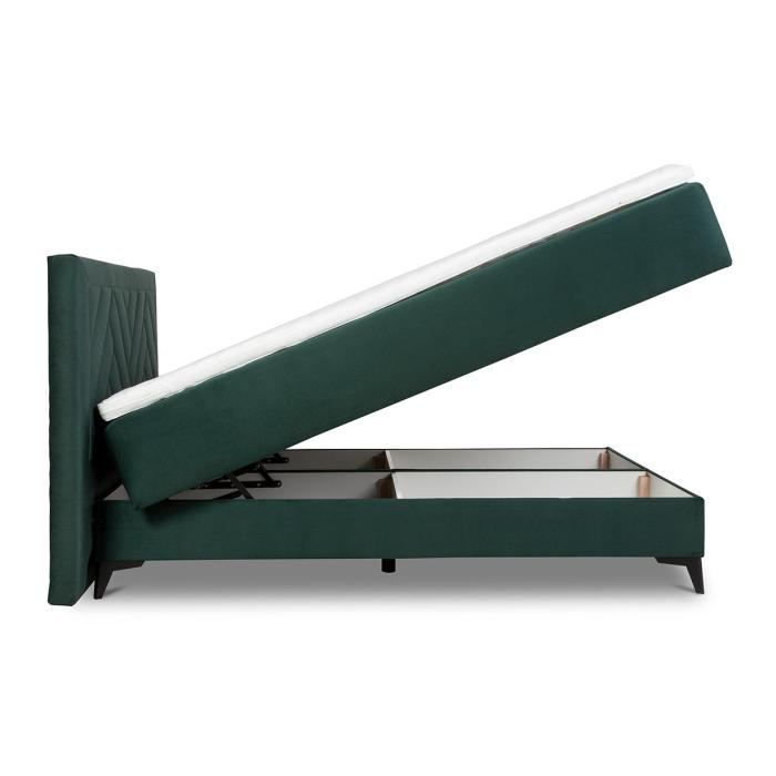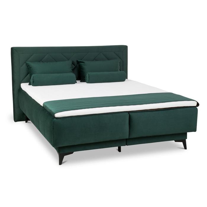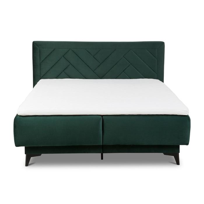 Łóżko kontynentalne Optima 160 posiada w komplecie materac kieszeniowy 7 stref twardości oraz topper z pianki wysokoelastycznej HR 3032 Premium. Wysokość toppera to 4 cm. Pokrowiec można prać w pralce w temperaturze 40 stopni. Łóżko posiada pojemnik na pościel wraz z siłownikiem gazowym ułatwiającym rozkładanie/podnoszenie. Powierzchnia spania wynosi 160x200 cm. Łóżko Optima jest wykonane w tkaninie Element, jest to tkanina hydrofobowa. Jako element dekoracyjny na zagłowiu zostały zastosowane ozdobne przeszycia. Nóżki wykonane z tworzywa sztucznego o wysokości 12cm. Wysokość siedziska od podłogi wynosi 56 cm. Produkt do samodzielnego montażu, pakowany w 5 paczek. Wymiary paczek 1/5: 84x204x42 cm; 2/5: 84x204x42 cm; 3/5: 13x184x110 cm; 4/5: 40x162x40 cm; 5/5: 30x30x16 cm.