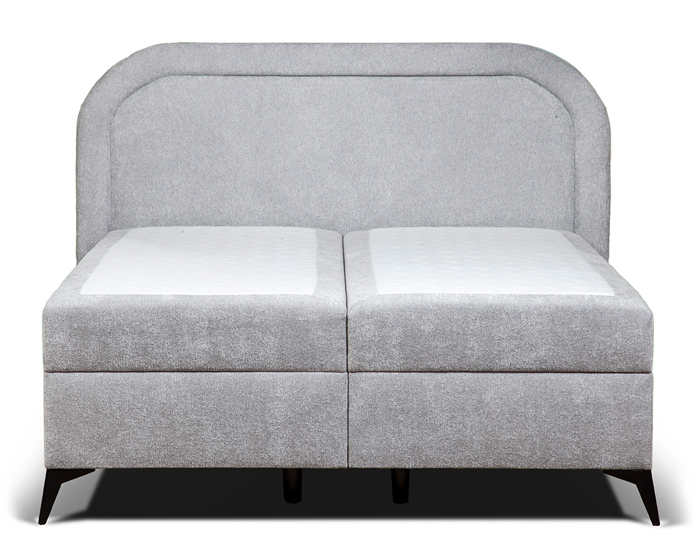 Łóżko zostało obite materiałem Toro w uniwersalnym kolorze szarym. Tkanina ta charakteryzuje się wysoką odpornością na ścieranie i łatwością czyszczenia, co sprawia, że mebel zachowa swój estetyczny wygląd przez długi czas. Całość uzupełniają wysokie, metalowe nóżki w kolorze czarnym, które nadają łóżku lekkości i współczesnego charakteru.