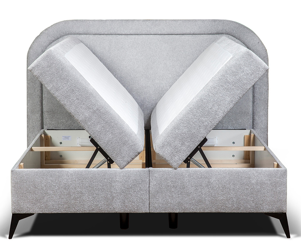 Łóżko kontynentalne Ornes to propozycja dla osób, które cenią wygodę snu i praktyczne rozwiązania w sypialni. Model został wyposażony w przestronny pojemnik na pościel otwierany na boki. Dzięki zastosowaniu mechanizmu sprężynowego podnoszenie siedziska jest płynne i lekkie, co znacznie ułatwia codzienne użytkowanie. Pojemnik pomieści nie tylko komplet pościeli, ale także dodatkowe koce, narzuty czy sezonowe tekstylia.
