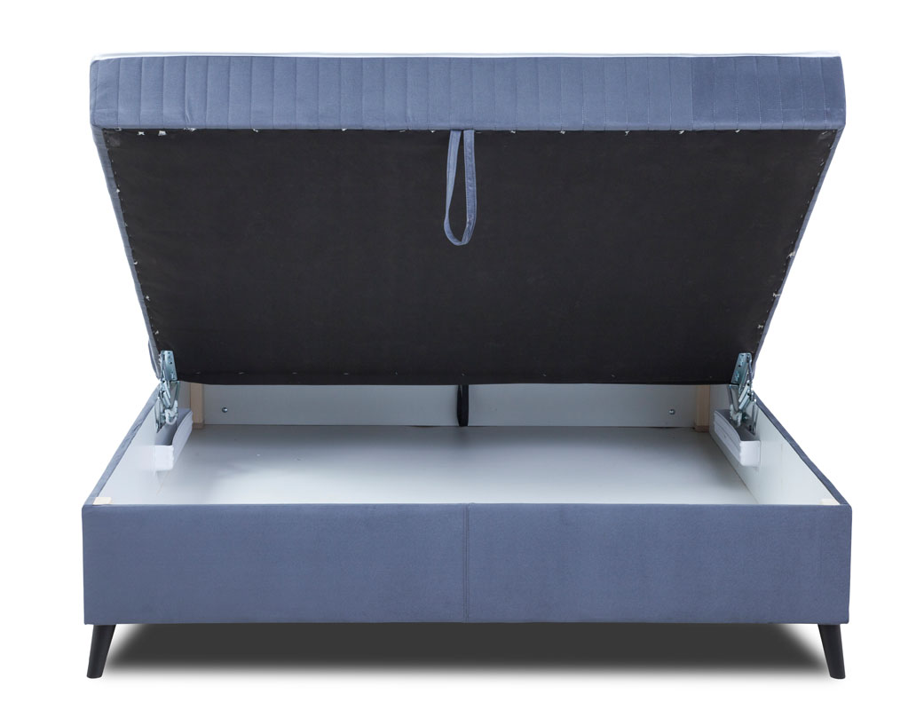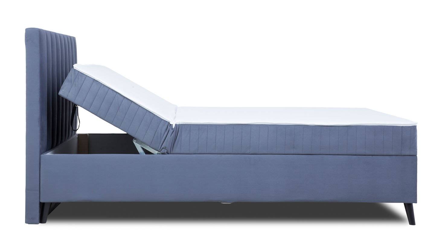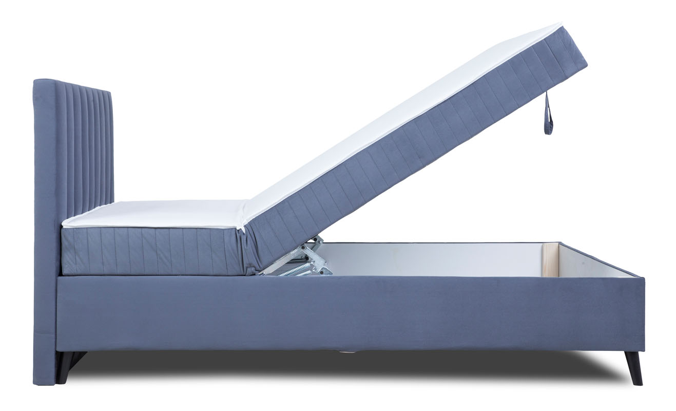 Powierzchnia spania o wymiarach 160x200 cm zapewnia obfitą przestrzeń do snu i relaksu. Dodatkowo, łóżko wyposażone jest w podnośnik sprężynowy, ułatwiający dostęp do praktycznego pojemnika na pościel.