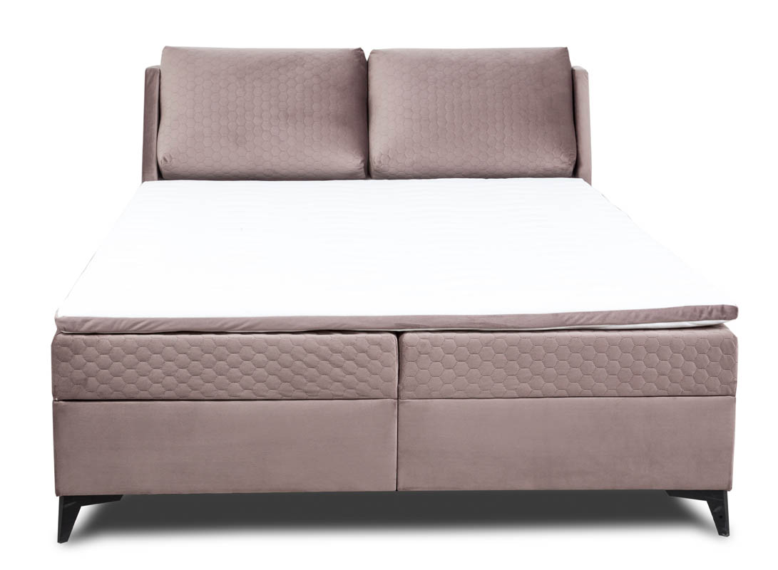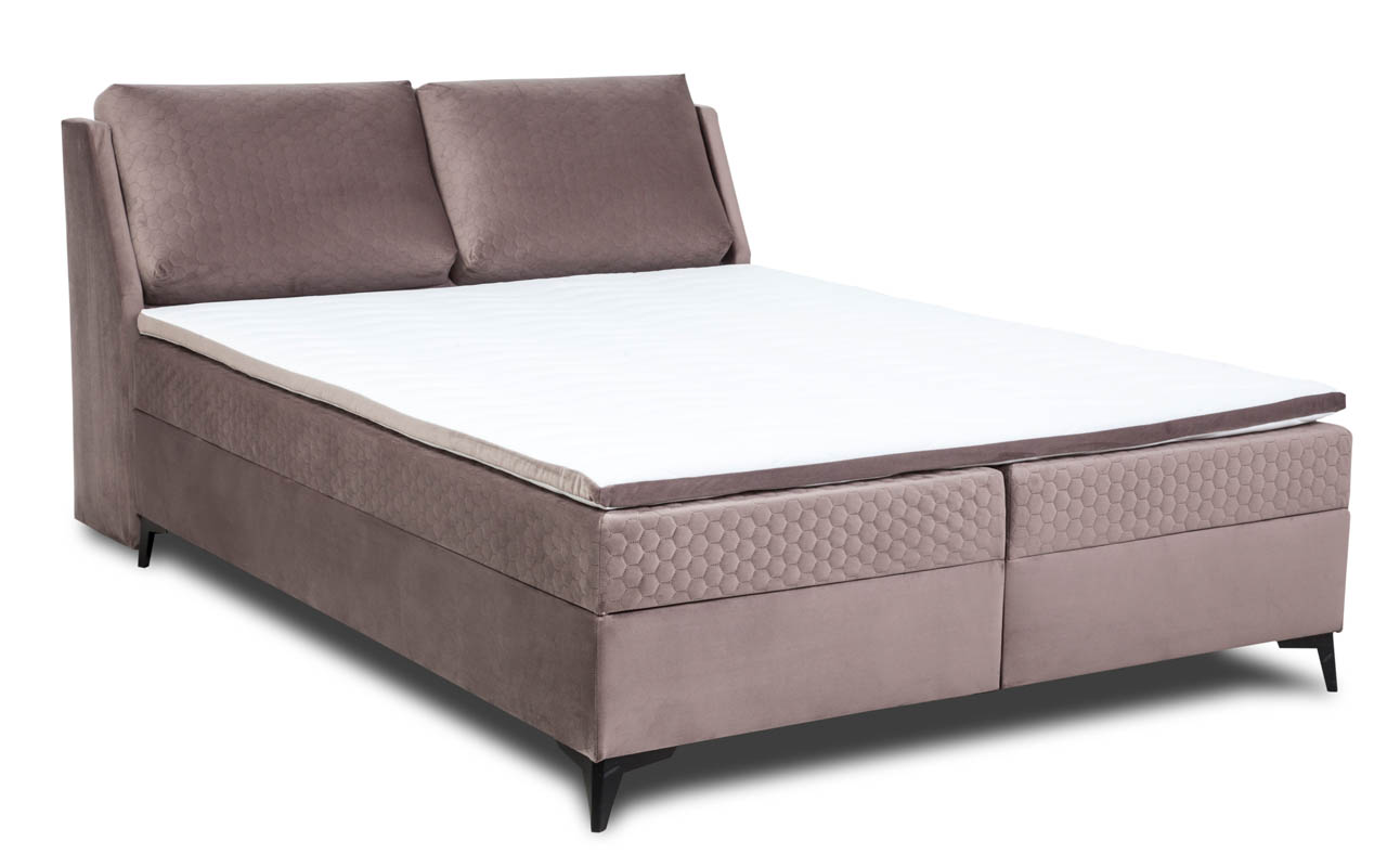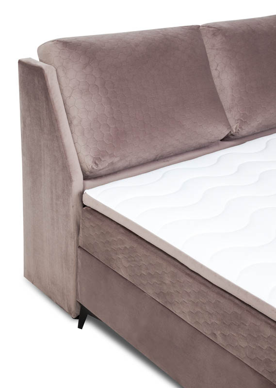 Kluczowym elementem komfortu łóżka Porto 160 jest jego materac z wkładem bonellowym. Tego rodzaju materac zapewnia doskonałe podparcie ciała, co przekłada się na zdrowy i wygodny sen. W zestawie znajduje się również topper wykonany z pianki PU-T25 o grubości 4 cm, który dodatkowo zwiększa komfort spania. Topper pokryty jest dzianiną przepikowaną watą o gramaturze 200 g oraz ozdobiony wstawką z tkaniny Velutto, co nie tylko podnosi komfort użytkowania, ale również estetykę całego zestawu.