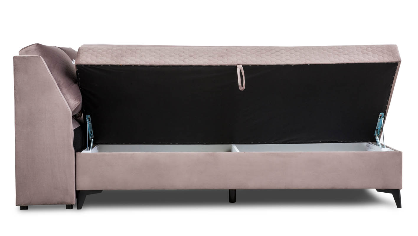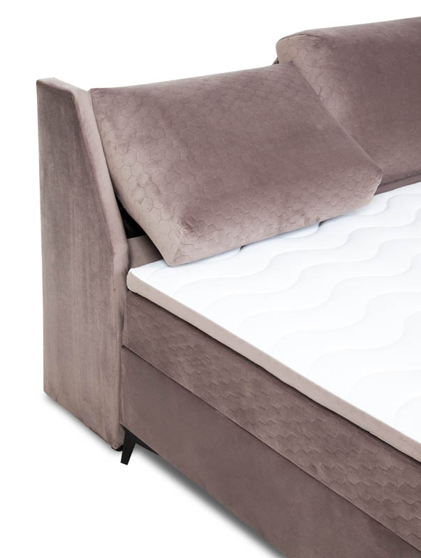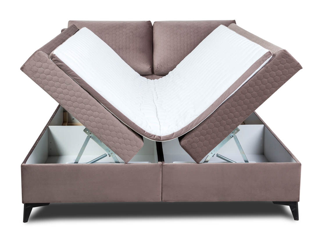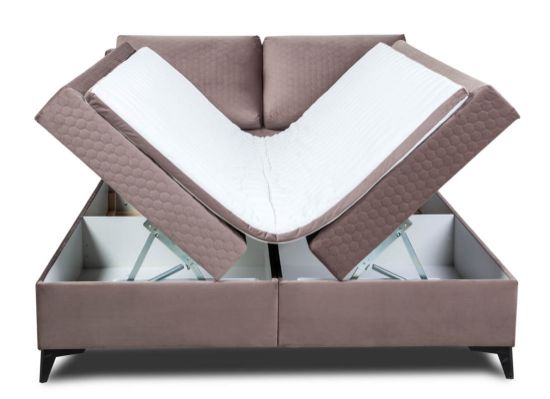 Łóżko Porto 160 wyposażone jest w pojemnik na pościel, który dzięki automatycznemu mechanizmowi sprężynowemu ułatwia dostęp i codzienne użytkowanie. Wystarczy delikatny ruch, aby podnieść materac i skorzystać z dodatkowej przestrzeni do przechowywania pościeli czy innych przedmiotów.