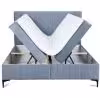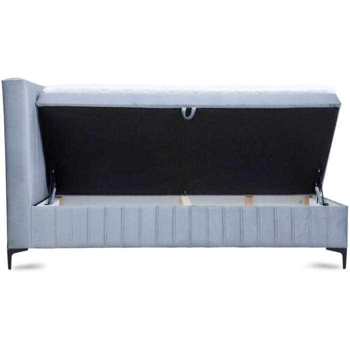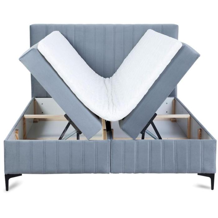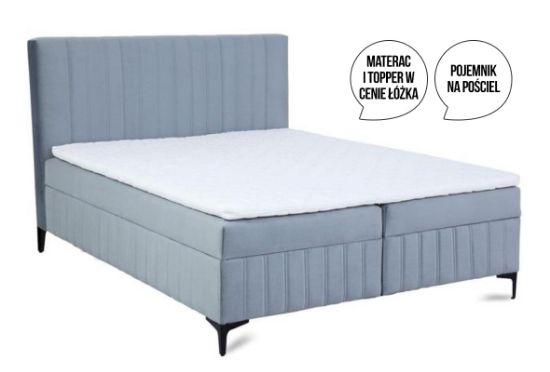 Łóżko składa się z dwóch skrzyń oraz zagłówka. Łóżko posiada dwa, duże pojemniki na pościel z automatem wspomagającym otwieranie. Wspomaganie mechanizmu sprawia, że otwieranie i zamykanie pojemników jest łatwe i wygodne. To doskonałe rozwiązanie dla osób ceniących funkcjonalność i porządek w sypialni.