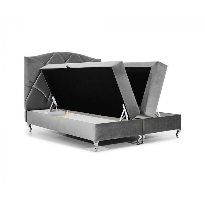Materac główny wypełniony jest sprężynami kieszeniowymi pocket oraz pianką wysoko-elastyczną T30, co zapewni pełen komfort i wygodę podczas użytkowania. Do łóżka dołączony jest topper o wysokości 5cm. Topper został wykonany z wytrzymałej pianki wysoko-elastycznej. Nóżki chromowane są dopełnieniem całości mebla.
