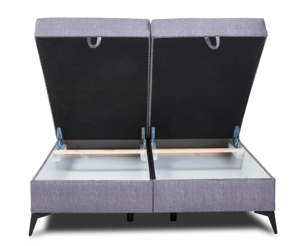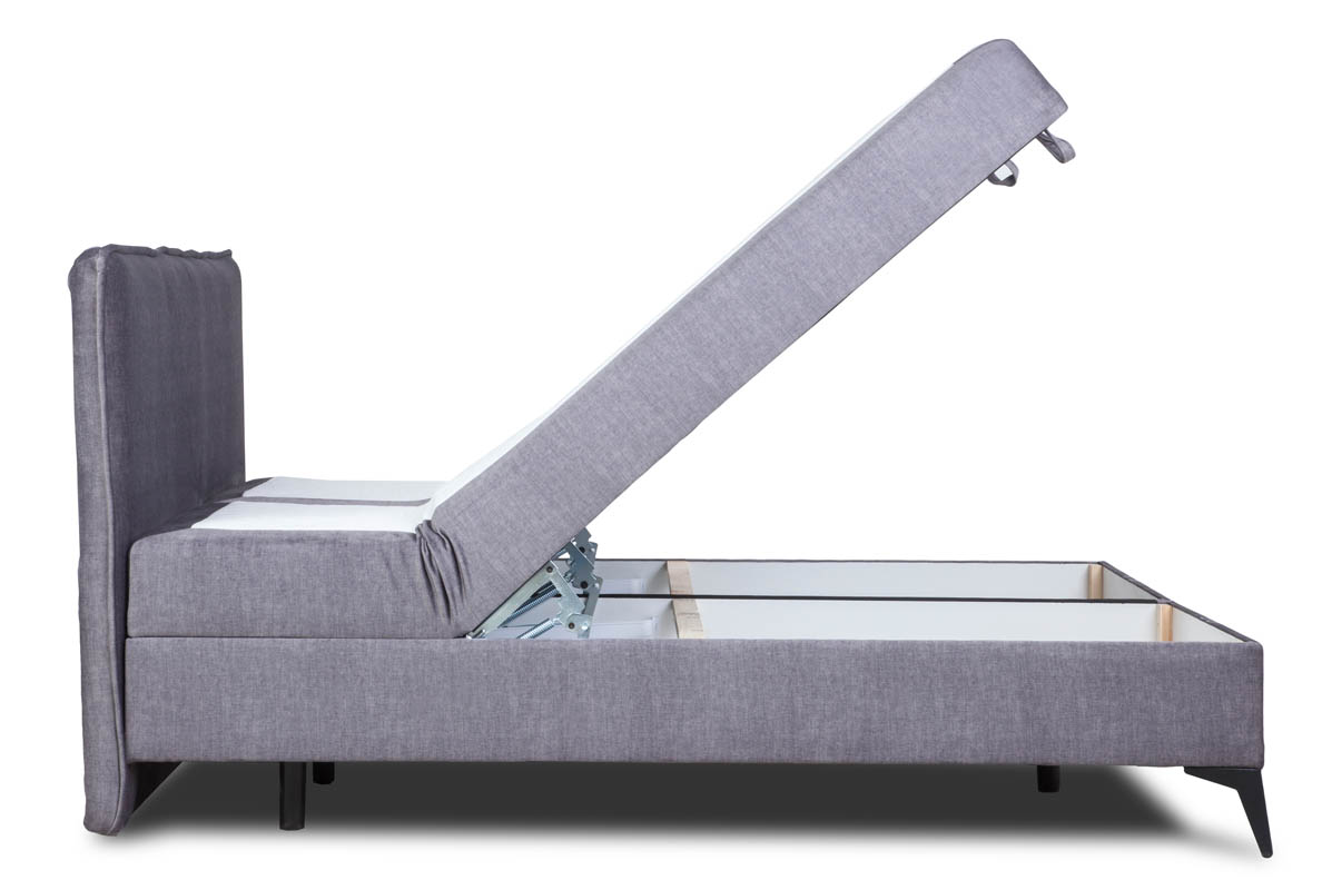 Jedną z kluczowych cech tego łóżka jest pojemnik na pościel wyposażony w automat sprężynowy. Dzięki temu rozwiązaniu, otwieranie i zamykanie pojemnika jest niezwykle proste i wygodne. Duża przestrzeń do przechowywania pozwala na schowanie kołder, poduszek czy innych tekstyliów, co pomaga w utrzymaniu porządku w sypialni.