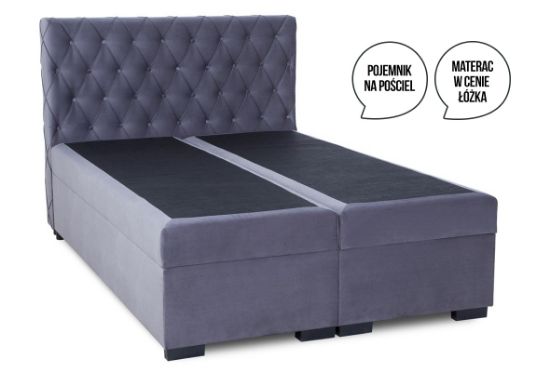 Pomyślano o praktycznych aspektach użytkowania tego łóżka. Dwa pojemniki na pościel z automatem wspomagającym rozkładanie ułatwiają przechowywanie dodatkowego kompleta pościeli czy koców. Automatyczny mechanizm sprawia, że otwieranie i zamykanie pojemników jest łatwe i wygodne. To doskonałe rozwiązanie dla osób ceniących funkcjonalność i porządek w sypialni.