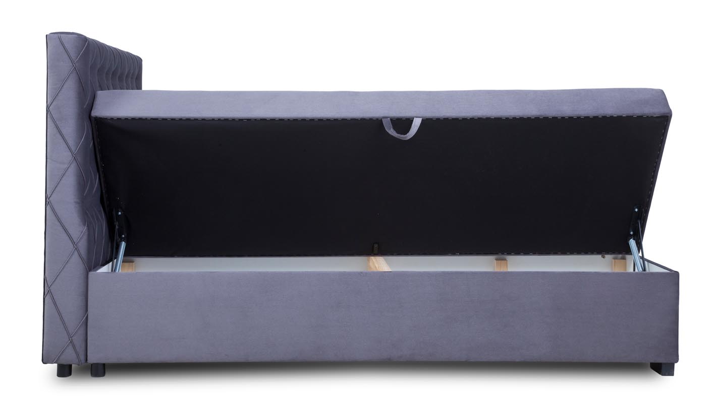 Pomyślano o praktycznych aspektach użytkowania tego łóżka. Dwa pojemniki na pościel z automatem wspomagającym rozkładanie ułatwiają przechowywanie dodatkowego kompleta pościeli czy koców. Automatyczny mechanizm sprawia, że otwieranie i zamykanie pojemników jest łatwe i wygodne. To doskonałe rozwiązanie dla osób ceniących funkcjonalność i porządek w sypialni.