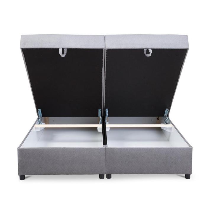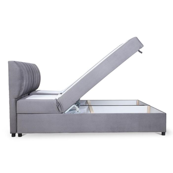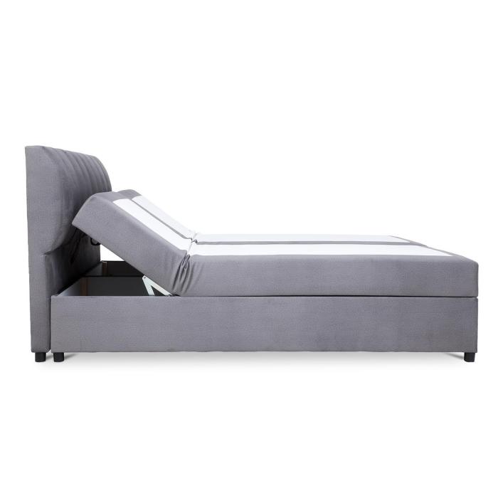 Łóżko kontynentalne z materacem Costa. Model składa się ze skrzyni oraz regulowanego zagłowia. Materac posiada sprężyny bonellowe oraz pasy tapicerskie. Łóżko posiada dwa pojemniki na pościel. Jako element dekoracyjny zostały zastosowane na zagłowiu ozdobne przeszycia i wciągi. Powierzchnia spania wynosi 160x200 cm. Nóżki plastikowe w kolorze czarnym.