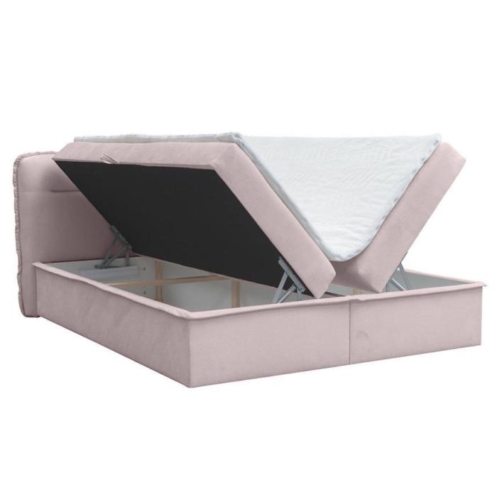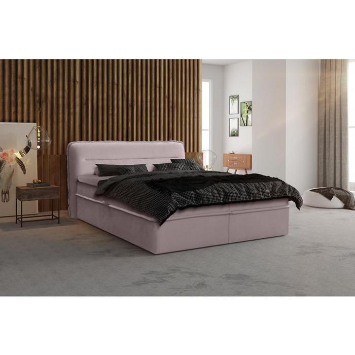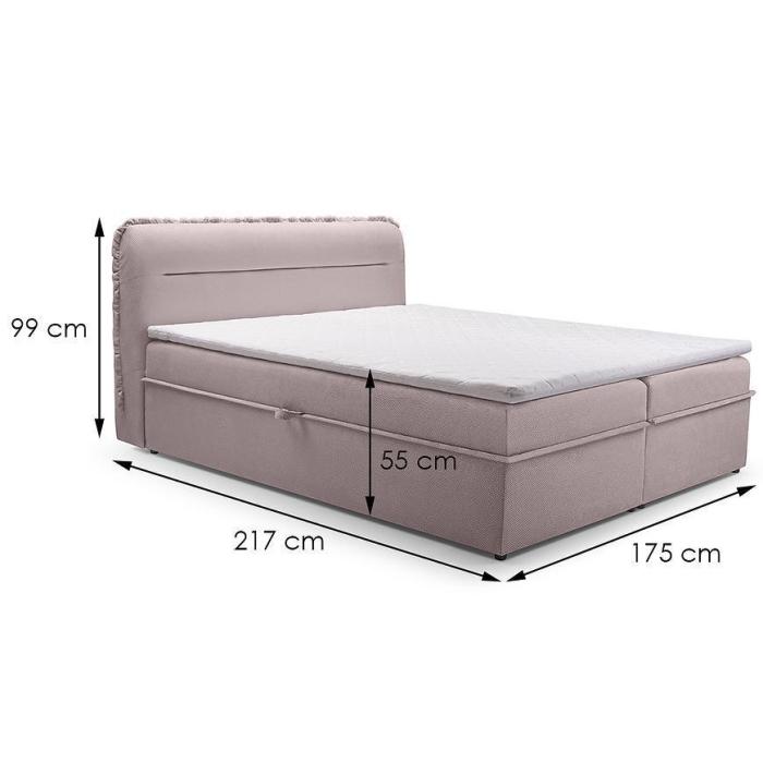 Ozdobne zagłowie tworzy ciekawy design, który wpisze się w niejedną sypialnie. Kolor beżowy nada eleganckiego i ponadczasowego wyglądu. Powierzchnia spania wynosi 160X200.