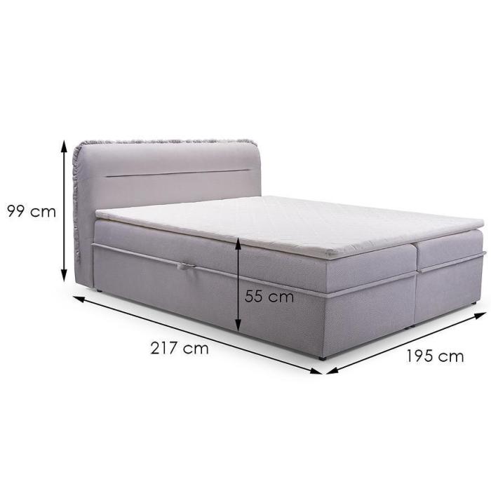 Ozdobne zagłowie tworzy ciekawy design, który wpisze się w niejedną sypialnie. Kolor szary nada eleganckiego i ponadczasowego wyglądu. Powierzchnia spania wynosi 180X200.