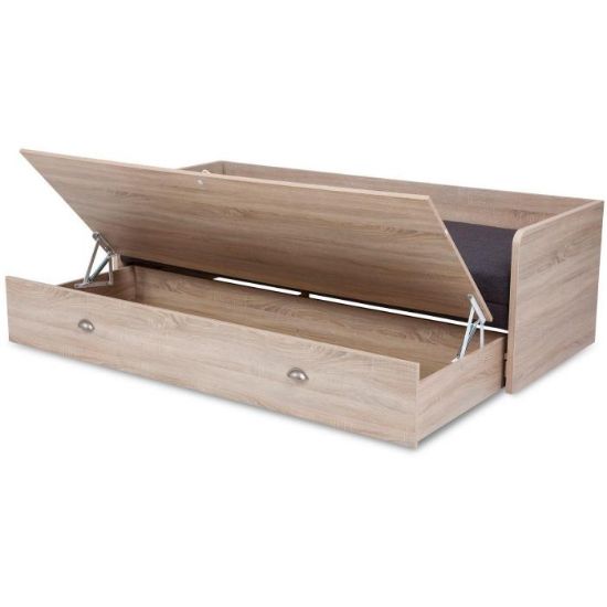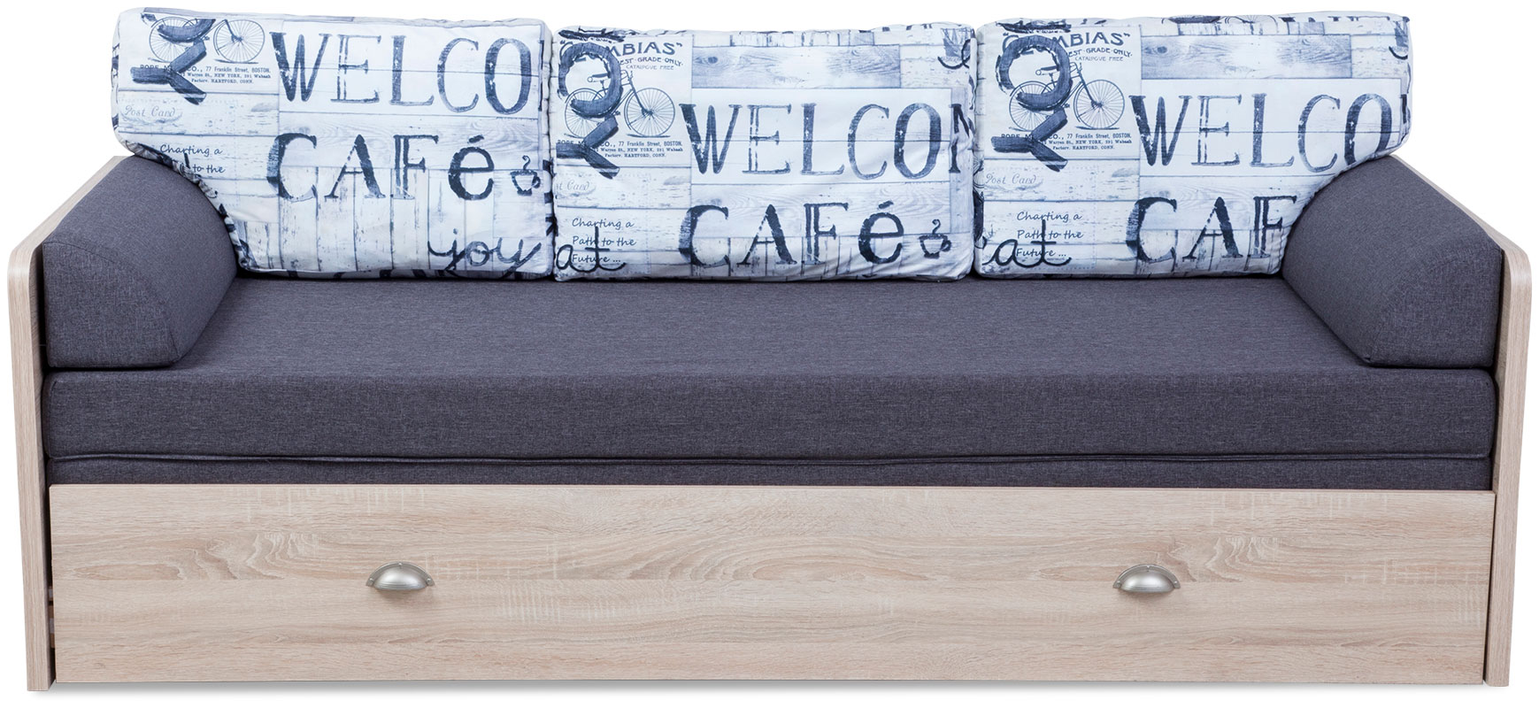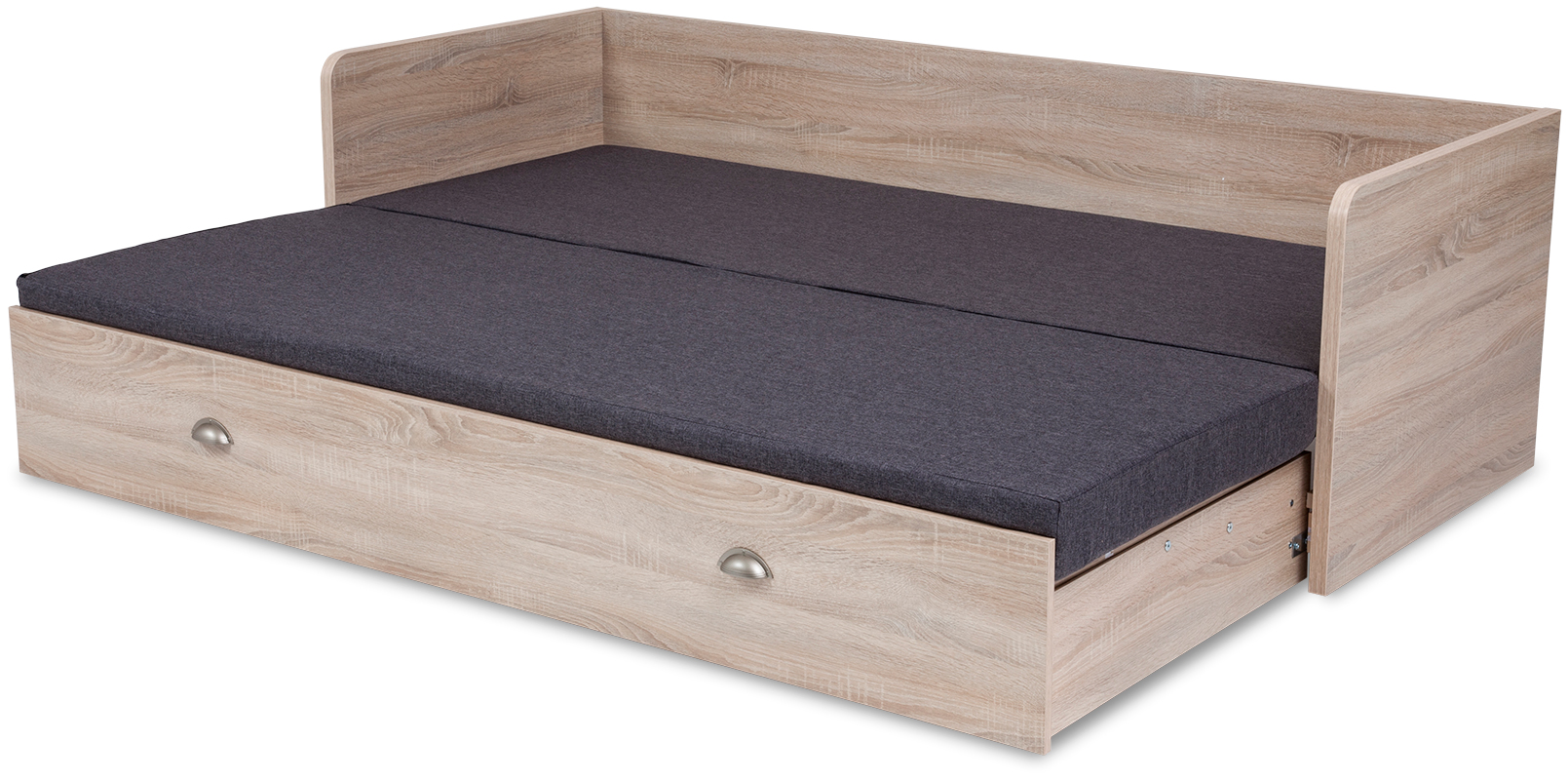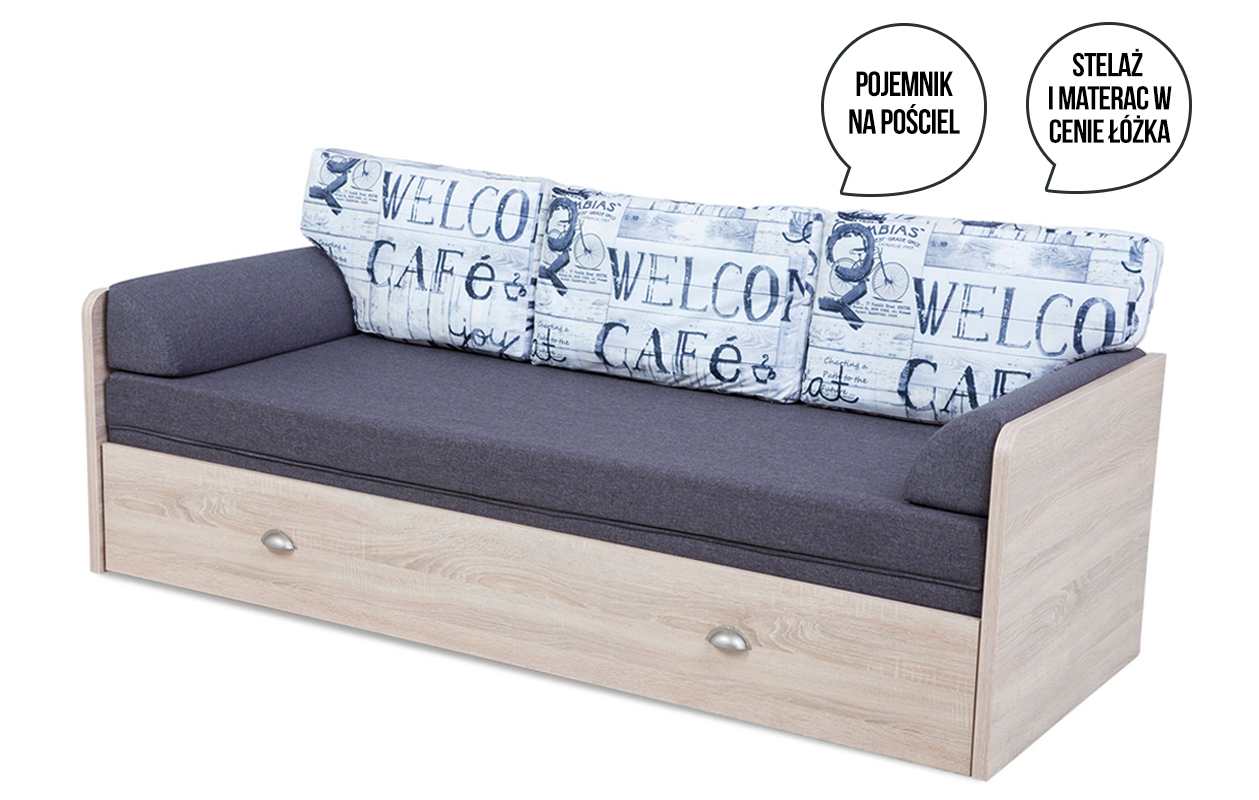 Rozkładane łóżko Fox sprawdzi się zarówno w kawalerce, jak i w pokoju nastolatka. Mechanizm pozwalający na składanie łóżka w wygodną kanapę, pozwala zaoszczędzić sporo miejsca w ciągu dnia. Łóżko rozkładamy poprzez wysunięcie szuflady i położenie materaca. W przypadku tego mebla nie można pominąć dużej szuflady, w której zmieści się pościel. Wiele osób obawia się, że na rozkładanych łóżkach komfort snu nie jest zadowalający. W przypadku rozkładanego łóżka Fox można zapomnieć o tym stereotypie. Nowoczesny, piankowy materac oraz duża powierzchnia spania sprawiają, że rano będziesz w pełni wypoczęty. Dołączone do łóżka piankowe wałki stanowią wygodne podłokietniki, kiedy łóżko jest złożone. Ważną rolę odgrywają też trzy poduszki oparciowe. Wystarczy zmienić ich poszewki, by odmienić wygląd swojego wnętrza.