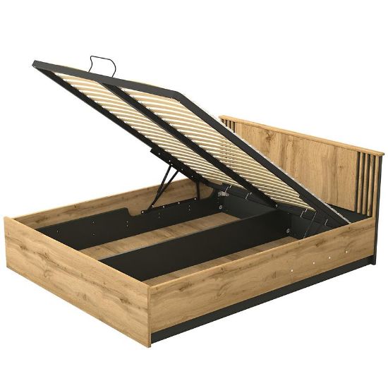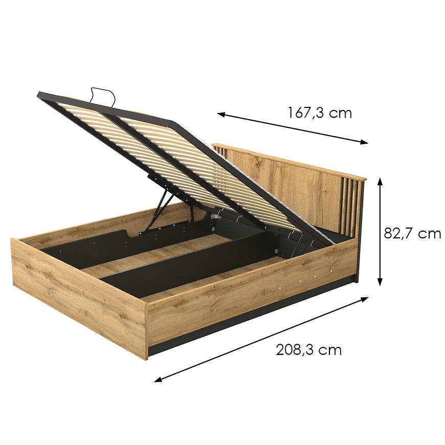 Kolorystyka i wybarwienie: Łóżko łączy ciepły odcień dębu Wotan z wyrafinowanym czarnym matowym wykończeniem. Ta harmonijna kombinacja kolorów nadaje wnętrzu nowoczesny i stylowy wygląd, doskonale komponując się z różnorodnymi aranżacjami.