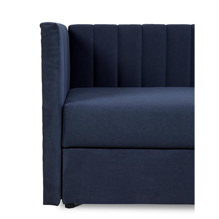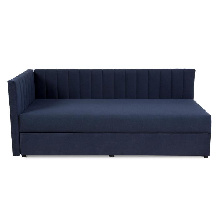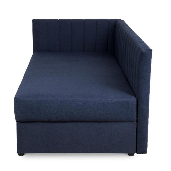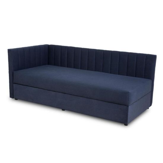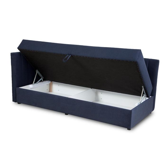 Łóżko Leo to mebel z wbudowanym materacem bonell wzmacniany belkami z pianki w siedzisku. Łóżko posiada pojemnik na pościel oraz spężyny. Powierzchnia spania o wymiarach 90x200 cm. Nóżki zostały wykonane z tworzywa sztucznego w kolorze czarnym o wysokości 3 cm. Jako element dekoracyjny zastosowano ozdobne pikowania na oparciu łóżka.
