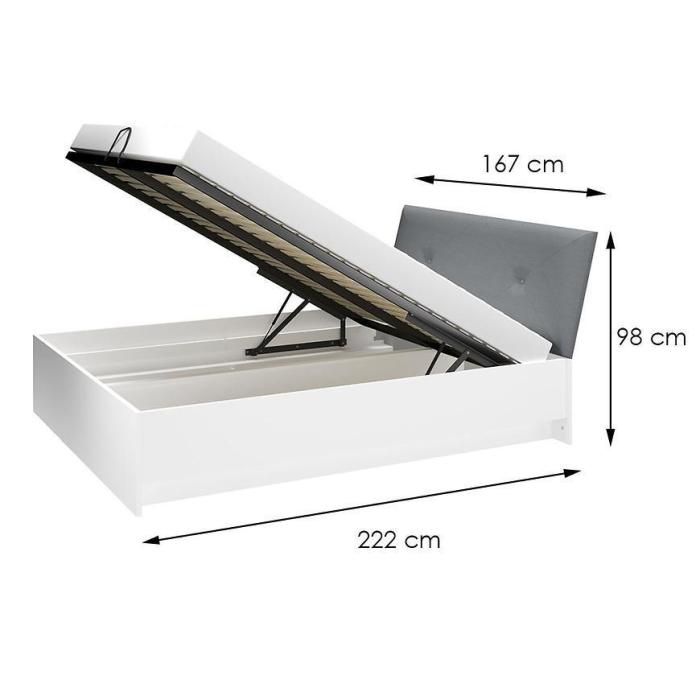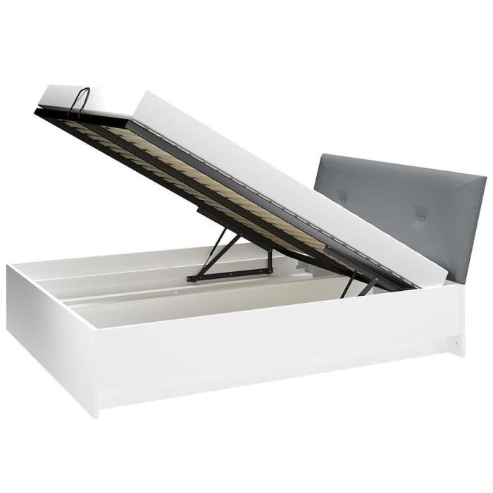 Pod łóżkiem znajduje się schowek, dzięki, któremu uzyskamy dodatkową przestrzeń na przechowywanie poscieli lub innych rzeczy.