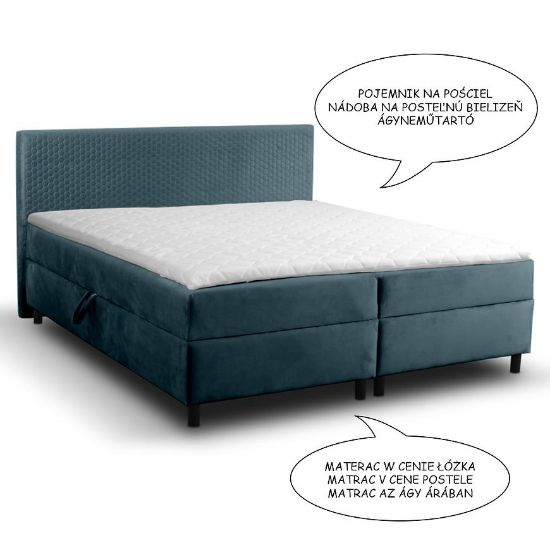 Jeśli chodzi o detale ozdobne, łóżko Lisa wyróżnia się pikowanym zagłówkiem w formie plastera miodu, co nadaje mu elegancji i nowoczesnego charakteru. Tył zagłówka został podbit czarną podbitką, co dodaje kontrastu i stylu.