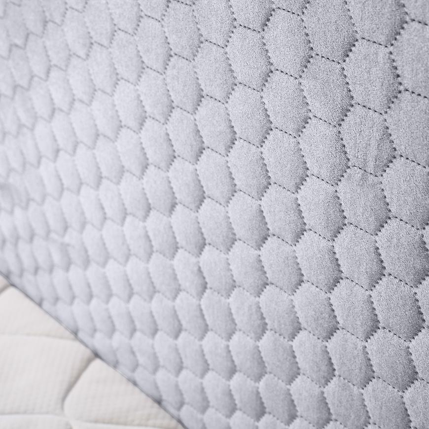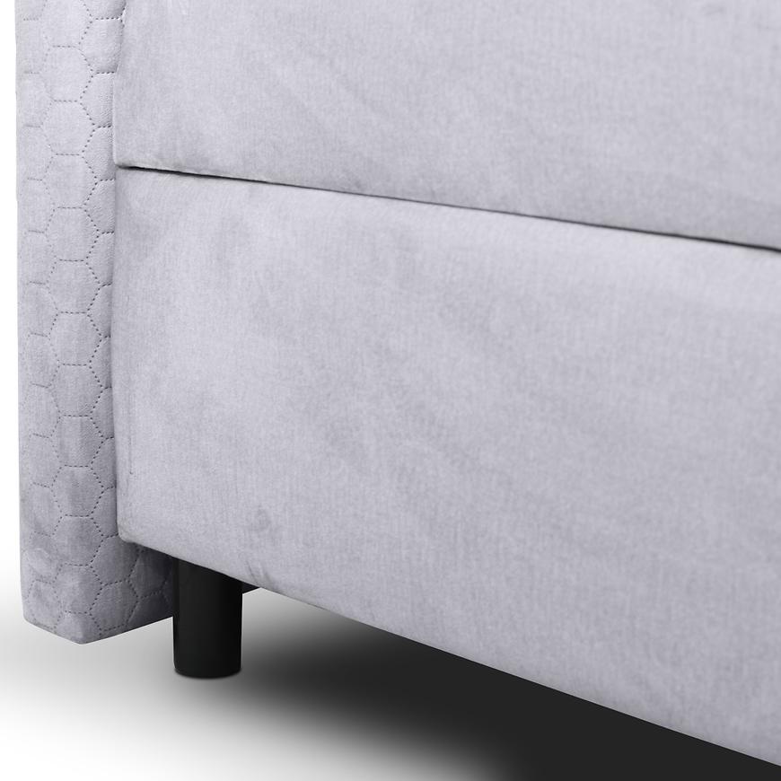 Jeśli chodzi o detale ozdobne, łóżko Lisa wyróżnia się pikowanym zagłówkiem w formie plastera miodu, co nadaje mu elegancji i nowoczesnego charakteru. Tył zagłówka został podbit czarną podbitką, co dodaje kontrastu i stylu.