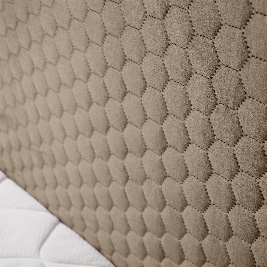 Jeśli chodzi o detale ozdobne, łóżko Lisa wyróżnia się pikowanym zagłówkiem w formie plastera miodu, co nadaje mu elegancji i nowoczesnego charakteru. Tył zagłówka został podbit czarną podbitką, co dodaje kontrastu i stylu.