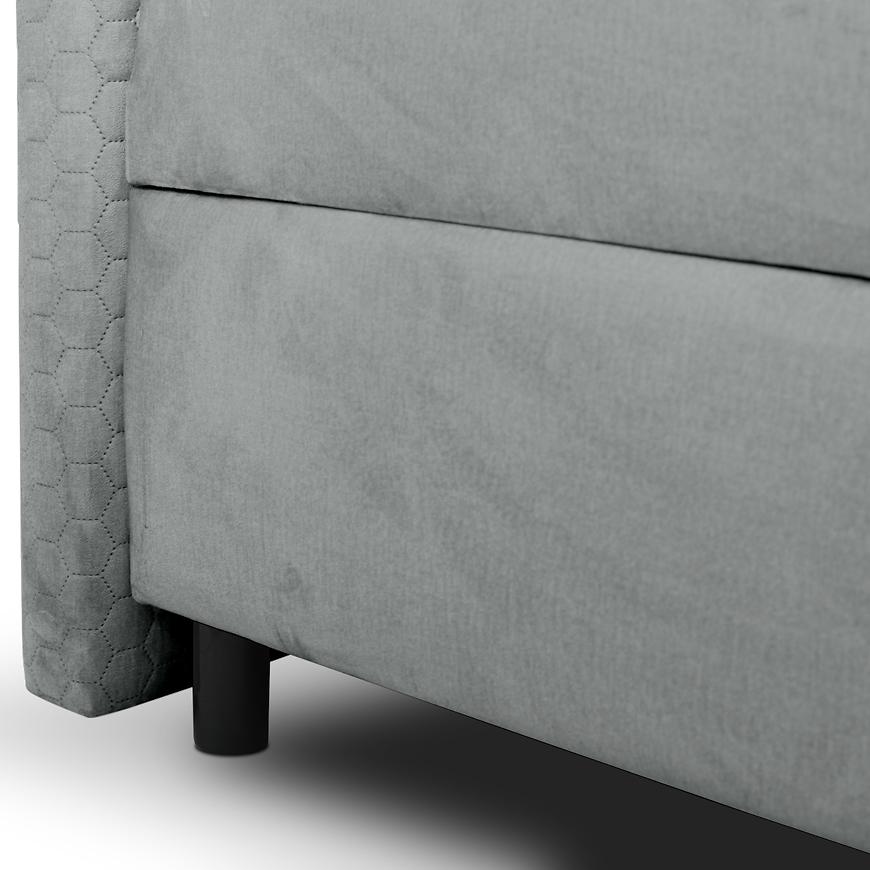 Jeśli chodzi o detale ozdobne, łóżko Lisa wyróżnia się pikowanym zagłówkiem w formie plastera miodu, co nadaje mu elegancji i nowoczesnego charakteru. Tył zagłówka został podbit czarną podbitką, co dodaje kontrastu i stylu.