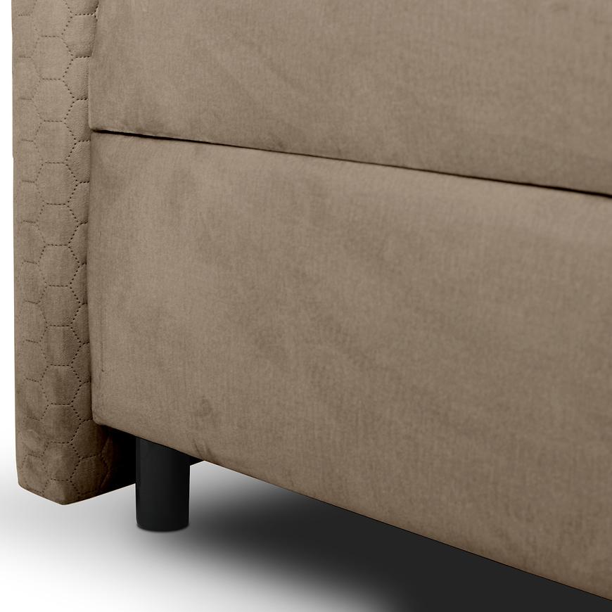 Jeśli chodzi o detale ozdobne, łóżko Lisa wyróżnia się pikowanym zagłówkiem w formie plastera miodu, co nadaje mu elegancji i nowoczesnego charakteru. Tył zagłówka został podbit czarną podbitką, co dodaje kontrastu i stylu.