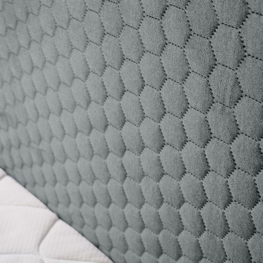 Jeśli chodzi o detale ozdobne, łóżko Lisa wyróżnia się pikowanym zagłówkiem w formie plastera miodu, co nadaje mu elegancji i nowoczesnego charakteru. Tył zagłówka został podbit czarną podbitką, co dodaje kontrastu i stylu.