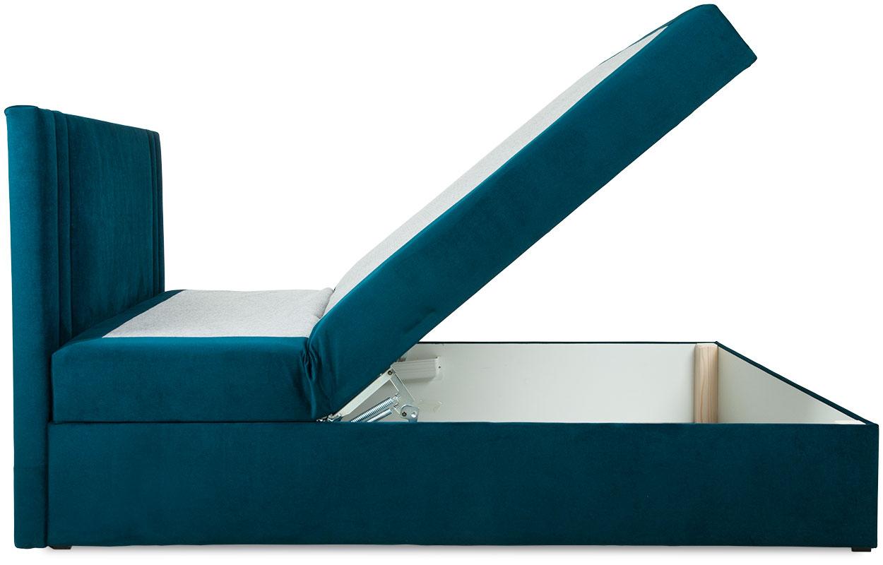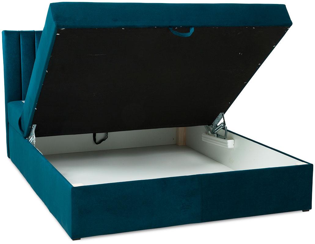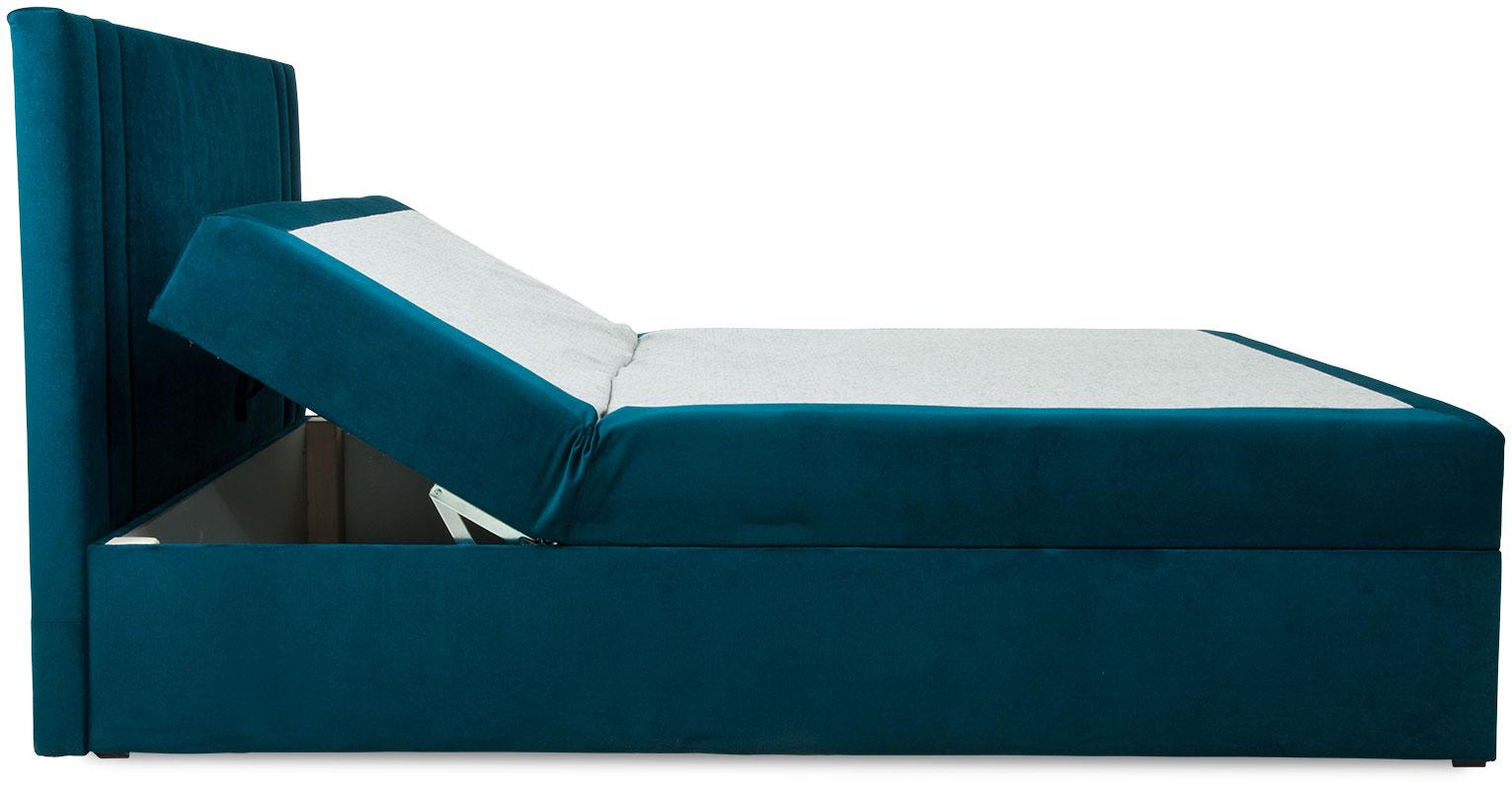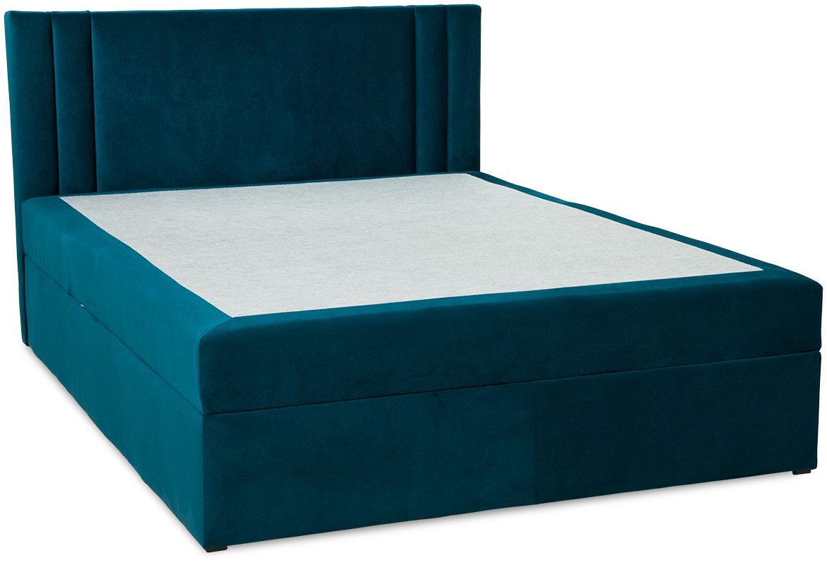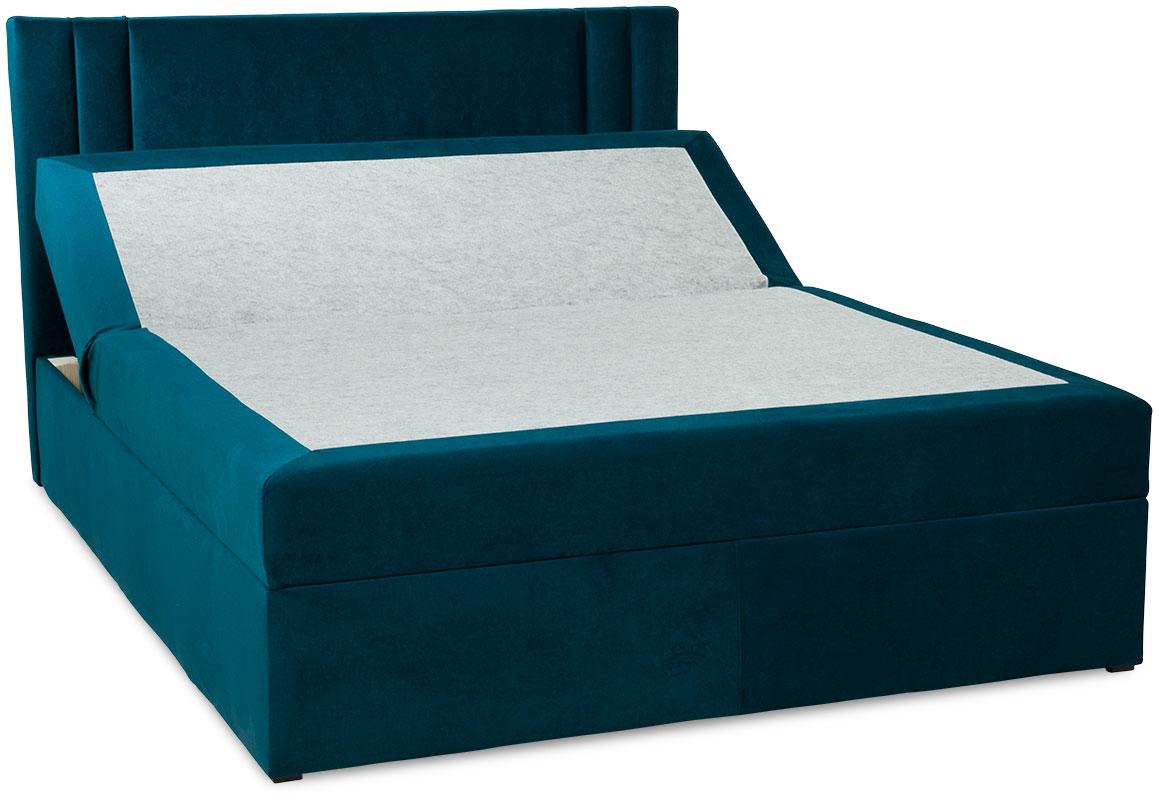 Łóżko kontynentalne Megan z materacem typu bonell na ramie drewnianej. Łóżko posiada regulowany zagłówek do 4 pozycji, co znacznie podnosi komfort użytkowania mebla. Skrzynia i zagłówie tapicerowane, w materacu wszyta tkanina antypoślizgowa typu fibertex. Model posiada ślizgacze plastikowe czarne. Jako element dekoracyjny zostały zastosowane ozdobne przeszycia na zagłowiu. Wysokość siedziska od podłogi 50 cm.