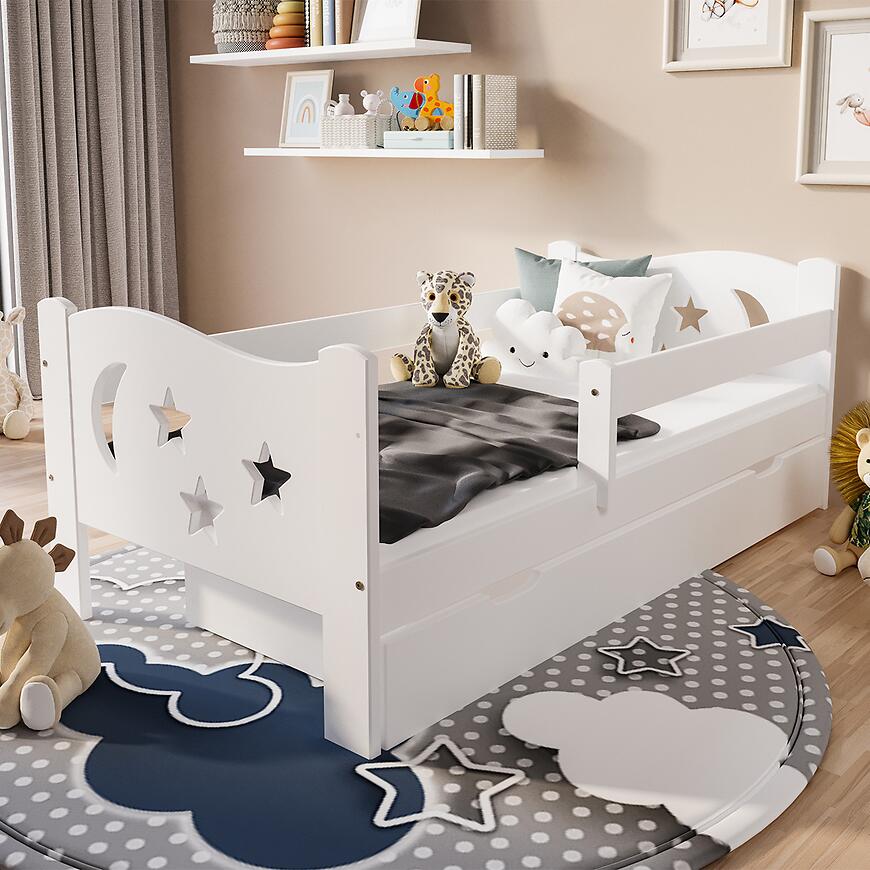 Łóżko Mikołaj 80/140 Biały to eleganckie, klasyczne łóżko dziecięce wykonane w całości z drewna, które łączy w sobie solidność, funkcjonalność i estetykę. Białe wybarwienie sprawia, że mebel wpisuje się w różnorodne aranżacje pokoju dziecięcego lub młodzieżowego, a matowe wykończenie dodaje mu subtelnej elegancji i ułatwia utrzymanie czystości.