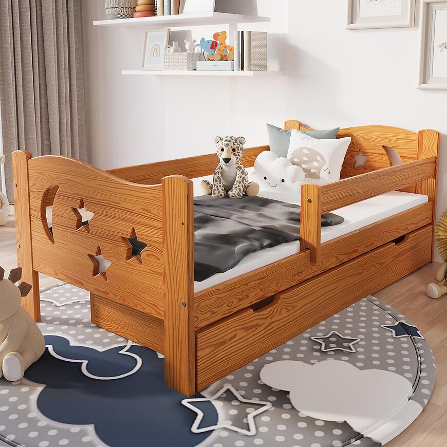 Łóżko Mikołaj 80/140 Olcha to drewniany mebel dziecięcy, który łączy klasyczny design z funkcjonalnością. Solidna konstrukcja, dołączony materac piankowy oraz stelaż w komplecie zapewniają wygodne i zdrowe miejsce do snu dla dziecka. Jasne wybarwienie olcha i matowe wykończenie nadają pokojowi przytulny charakter, a klasyczna forma mebla sprawia, że pasuje do większości aranżacji dziecięcych wnętrz.
