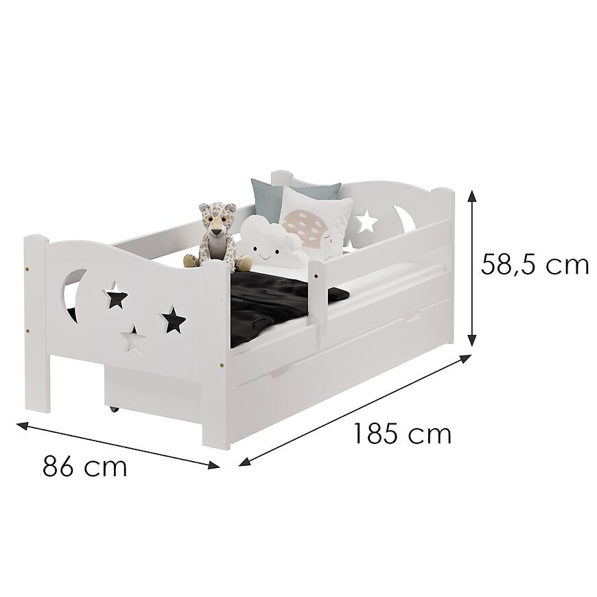 Model ma 86 cm szerokości, 185 cm głębokości i 58,5 cm wysokości, co sprawia, że jest komfortowy i ergonomiczny w użytkowaniu. Powierzchnia spania o wymiarach 80x180 cm to idealne rozwiązanie zarówno dla młodszych, jak i starszych dzieci.