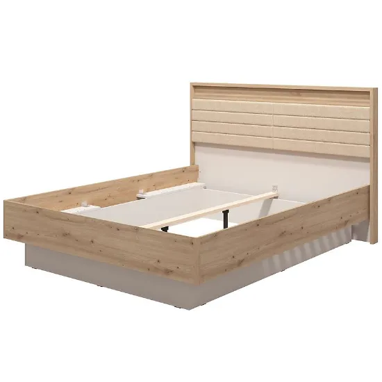 Wykonane z laminowanej płyty wiórowej o wykończeniu matowym w modnym odcieniu artisan, łóżko prezentuje się elegancko i nowocześnie. Naturalna kolorystyka wprowadza do wnętrza przytulność i doskonale komponuje się zarówno z jasnymi, jak i ciemniejszymi dodatkami. To uniwersalne łóżko świetnie wpisuje się w aranżacje nowoczesne, skandynawskie i loftowe.
