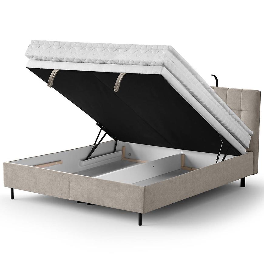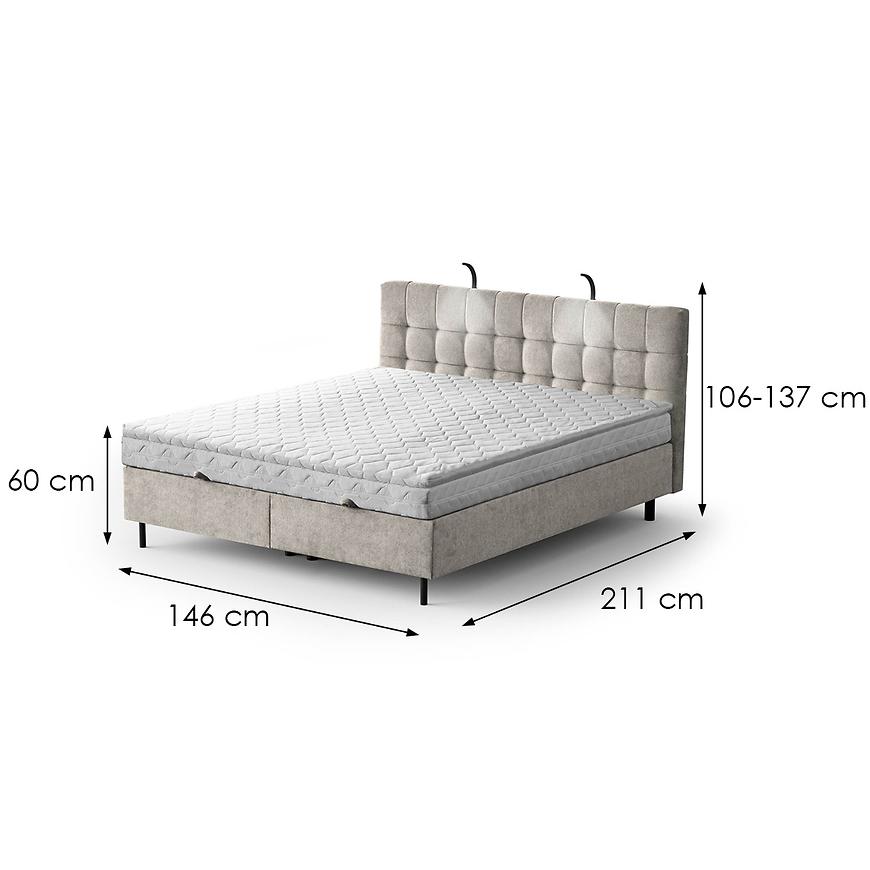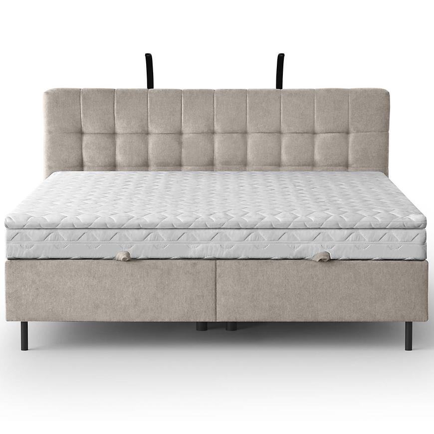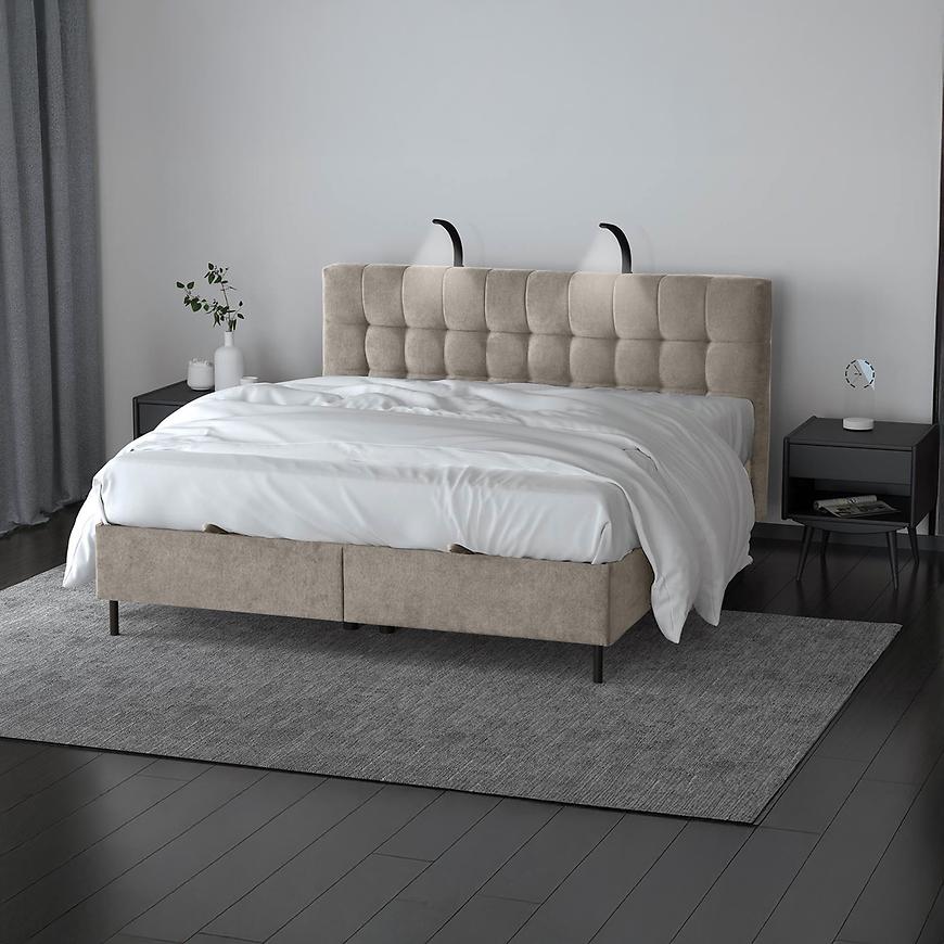 Łóżko Muna z topperem 140×200 Aston 02 to eleganckie i funkcjonalne rozwiązanie do każdej sypialni. Tapicerka w ciepłym beżowym kolorze nadaje wnętrzu przytulnego charakteru, a solidne czarne nóżki zapewniają stabilność konstrukcji. Powierzchnia spania 140 × 200 cm w połączeniu z materacem sprężynowym typu pocket i miękkim topperem gwarantuje komfortowy i zdrowy sen. Łóżko posiada dwa pojemniki na pościel z mechanizmem podnoszenia na sprężynie, co ułatwia przechowywanie i utrzymanie porządku. Wysokość do siedziska wynosząca 60 cm ułatwia siadanie i wstawanie. Dodatkowo w komplecie znajdują się lampki, które zwiększają funkcjonalność i nadają przytulnej atmosfery. Całość tworzy nowoczesne i wygodne łóżko, łączące styl z praktycznymi rozwiązaniami do codziennego użytkowania.