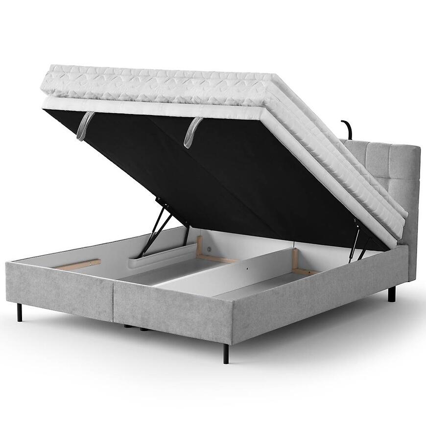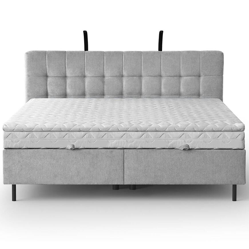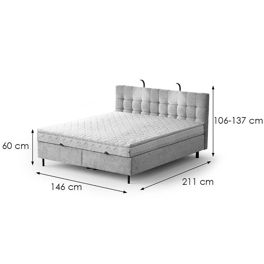 Łóżko Muna z topperem 140×200 Aston 15 to stylowe i funkcjonalne łóżko w klasycznej, szarej tapicerce, które doskonale wpasuje się w nowoczesną sypialnię. Powierzchnia spania o wymiarach 140 × 200 cm w połączeniu z materacem sprężynowym typu pocket i dołączonym topperem gwarantuje wygodny i zdrowy sen. Mebel wyposażono w dwa pojemniki na pościel z automatycznym podnoszeniem na sprężynie, co ułatwia przechowywanie rzeczy i utrzymanie porządku. Wysokość do siedziska wynosząca 60 cm zapewnia komfort użytkowania, a wbudowane lampki dodają przyjemnej, nastrojowej atmosfery. Łóżko posiada solidne czarne nogi i stelaż w komplecie, łącząc praktyczność z eleganckim designem.