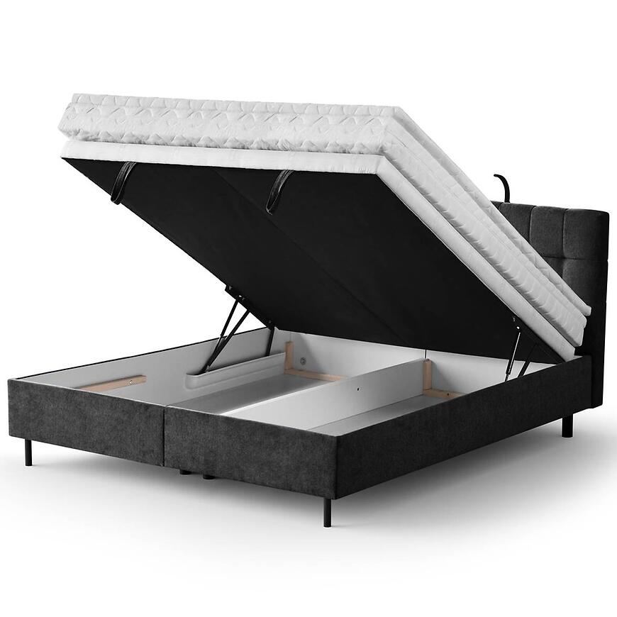 Łóżko Muna z topperem 160×200 Aston 18 w klasycznej czerni to propozycja łącząca elegancję z wysokim komfortem użytkowania. Wyposażone w materac sprężynowy typu pocket oraz dodatkowy topper, zapewnia wygodne i zdrowe warunki snu, idealnie dopasowując się do kształtu ciała. Powierzchnia spania o wymiarach 160×200 cm sprawia, że model doskonale sprawdzi się jako komfortowe łóżko dwuosobowe. Dzięki wysokości siedziska 60 cm wstawanie i siadanie na łóżku jest wyjątkowo wygodne.