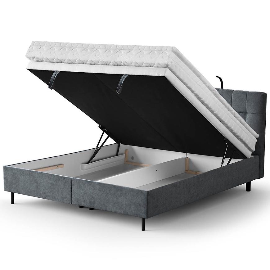 Nowoczesne łóżko Muna z topperem 180x200 Aston 13 łączy komfort snu z eleganckim wyglądem. W komplecie znajdziesz stelaż, materac pocket oraz topper, które gwarantują zdrowy i wygodny wypoczynek. Funkcjonalne dwa pojemniki na pościel i wbudowane lampki zwiększają praktyczność mebla. Szara tapicerka z tkaniny w połączeniu z czarnymi nogami nadaje wnętrzu subtelnego, nowoczesnego charakteru. Dzięki funkcji spania oraz automatycznemu podnośnikowi łóżko jest wygodne w codziennym użytkowaniu i stylowe jednocześnie.