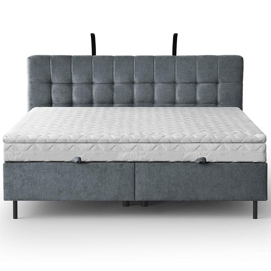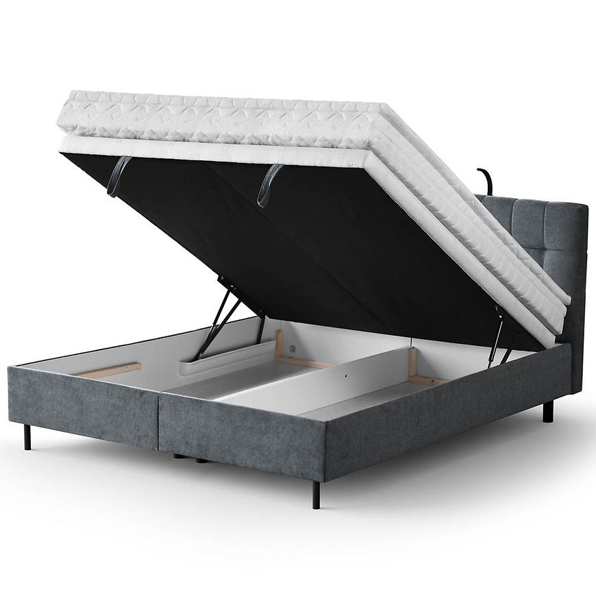 Stylowe łóżko Muna z topperem 180x200 Aston 17 to połączenie komfortu i elegancji, które odmieni Twoją sypialnię. W komplecie otrzymujesz stelaż, materac typu pocket oraz topper, co gwarantuje wygodny i zdrowy sen. Praktyczne dwa pojemniki na pościel oraz wbudowane lampki zwiększają funkcjonalność mebla. Łóżko tapicerowane w eleganckiej tkaninie w kolorze antracytowym z czarnymi nogami świetnie wpasuje się w nowoczesne wnętrza. Dzięki funkcji spania oraz automatycznemu podnośnikowi korzystanie z niego jest wyjątkowo wygodne. Idealne rozwiązanie dla osób ceniących styl i komfort.