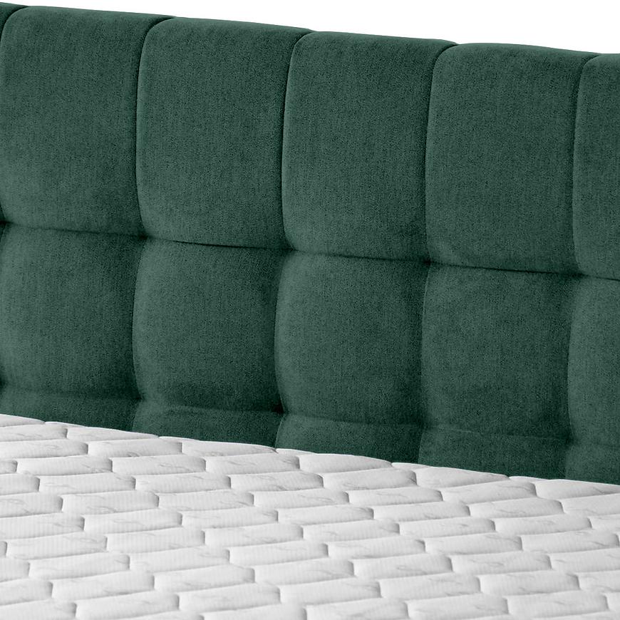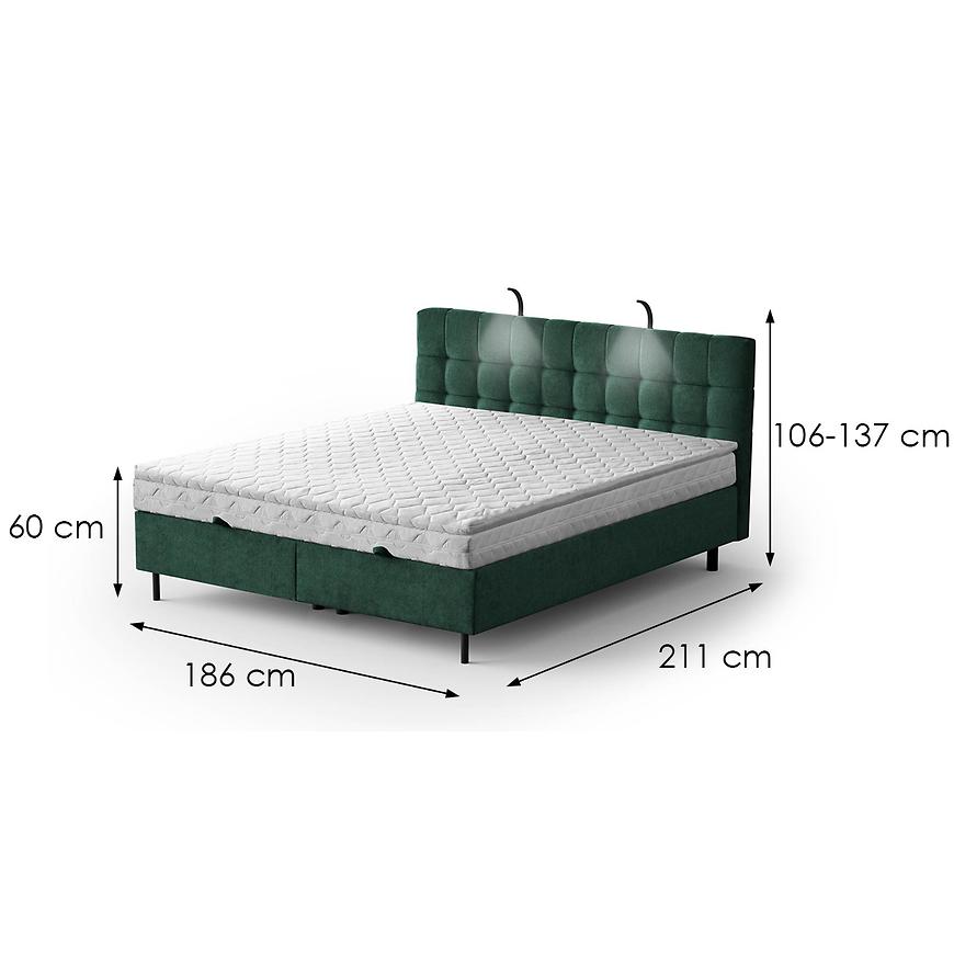 Nowoczesne łóżko Muna z topperem 180x200 Aston 27 łączy elegancję z praktycznym designem. W zestawie otrzymujesz stelaż, materac pocket oraz topper, które gwarantują komfortowy i zdrowy sen. Funkcjonalne dwa pojemniki na pościel oraz wbudowane lampki zwiększają wygodę codziennego użytkowania. Tapicerka z tkaniny w modnym zielonym kolorze oraz czarne nogi nadają wnętrzu charakteru i świeżości. Dzięki funkcji spania oraz automatycznemu podnośnikowi łóżko łączy styl, komfort i praktyczne rozwiązania w jednym meblu.