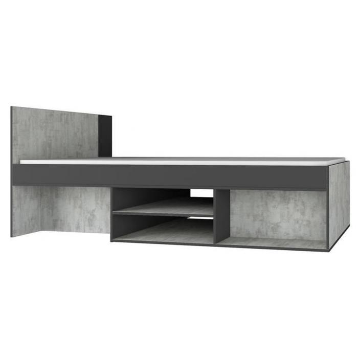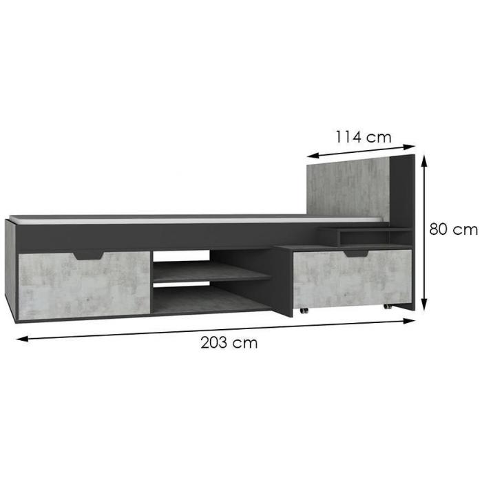 Młodzieżowe łóżko Nano z szufladami w szarej kolorystyce z pewnością niejednemu przypadnie do gustu. Jest funkcjonalne posiada półki i szuflady więc można do niego schować różne przedmioty zachowując porządek w pokoju. Łóżko wykonane jest z płyty wiórowej laminowanej o matowym wykończeniu.