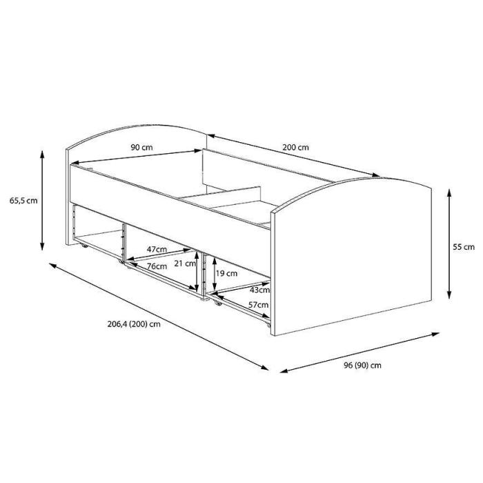 Łóżko nie posiada stelaża ani materaca w zestawie.