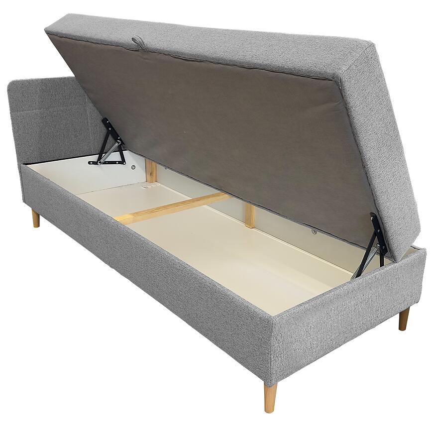 Łóżko Olimp Pocket L 80x200 Neve 85 to praktyczne łóżko jednoosobowe z elegancką szarą tapicerką. Wyposażone w wygodny materac kieszeniowy i solidny stelaż, gwarantuje komfort snu. Automat sprężynowy ułatwia dostęp do pojemnego schowka na pościel. Kompaktowe wymiary 82x84x204 cm oraz wysokość siedziska 51 cm sprawiają, że idealnie sprawdzi się w mniejszych przestrzeniach. Wykonane z trwałej płyty wiórowej, należy do kolekcji OLIMP i łączy funkcjonalność z nowoczesnym stylem