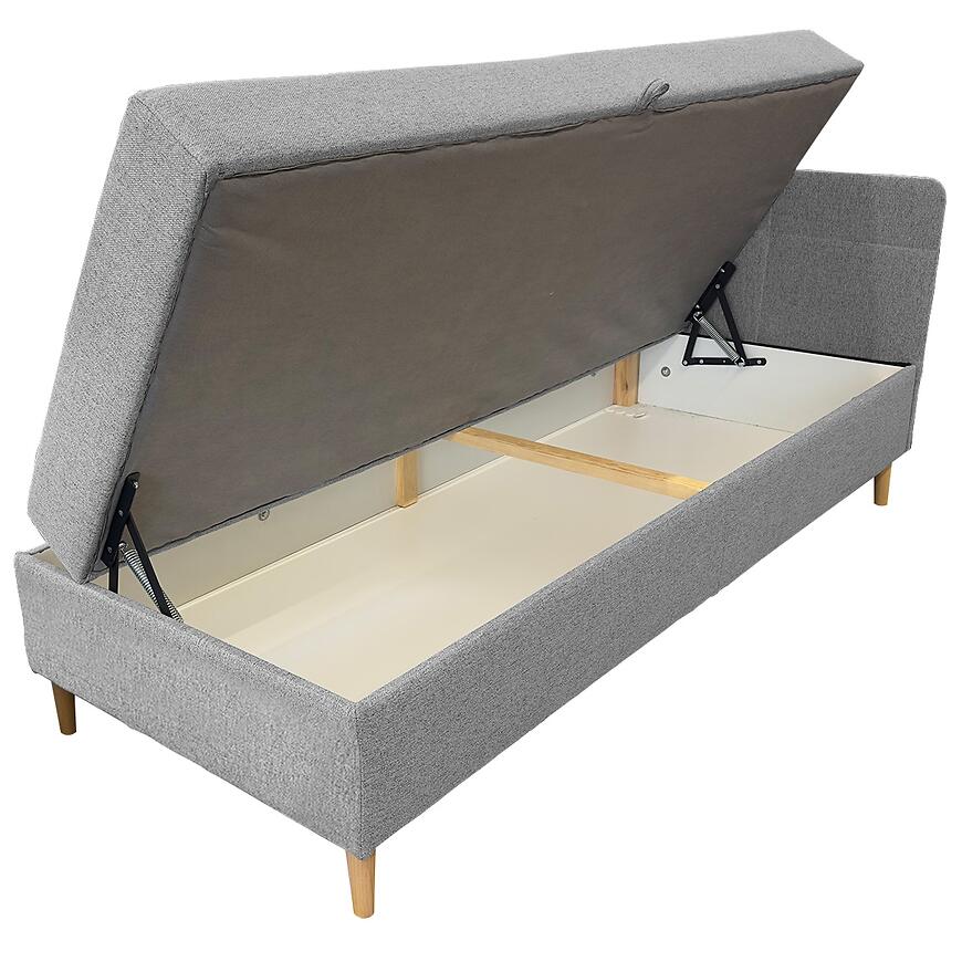 Łóżko Olimp Pocket P 80x200 Neve 85 to praktyczne łóżko o klasycznym designie, wykonane z płyty wiórowej i tapicerowane szarą tkaniną. Posiada powierzchnię spania 80x200 cm, wysokość całkowitą 82 cm oraz wysokość do siedziska 51 cm. W komplecie znajduje się materac kieszeniowy oraz stelaż, a łóżko wyposażone jest w jeden schowek na pościel z mechanizmem podnoszenia sprężynowego. Mebel ma prawostronną orientację, waży 84 kg i wymaga samodzielnego montażu.