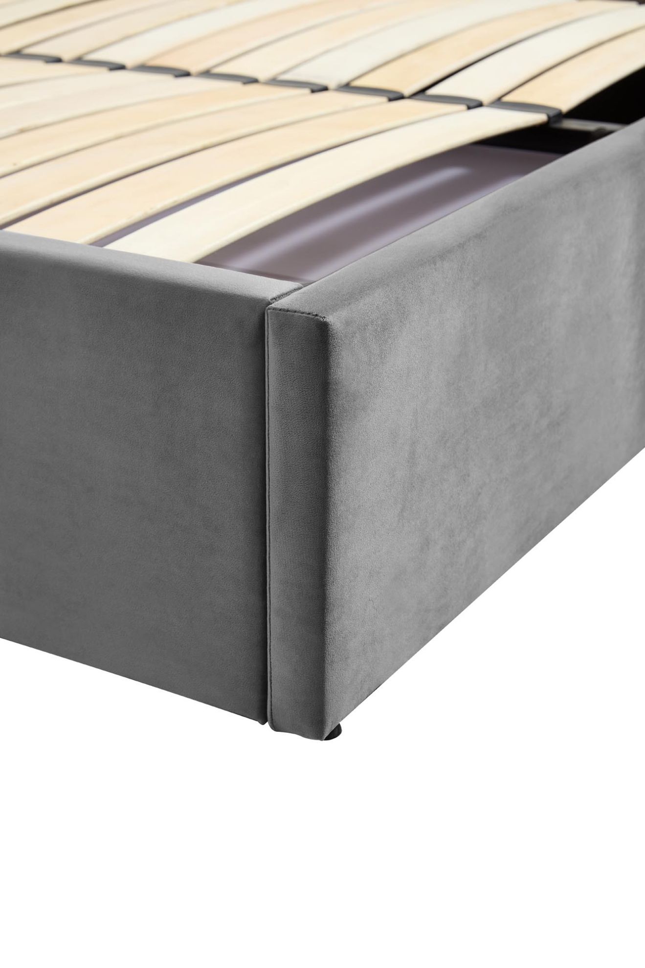 Kolor popielaty oraz srebrne detale nadają łóżku Onufry wyjątkowego blasku i sprawiają, że doskonale komponuje się z różnymi stylami aranżacyjnymi. Srebrne elementy dodają meblowi subtelnej ekstrawagancji.