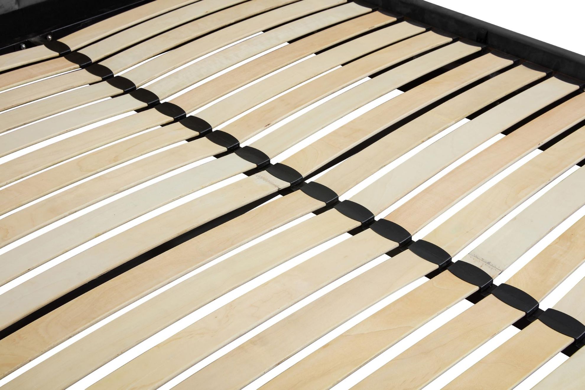 Jednym z najważniejszych atutów tego łóżka jest praktyczny pojemnik na pościel, umieszczony w jego wnętrzu. To inteligentne rozwiązanie, które pozwala na dyskretny i estetyczny sposób przechowywania dodatkowych kołder, poduszek czy innych tekstyliów, co jest szczególnie istotne w przypadku pomieszczeń, gdzie przestrzeń jest cenna.