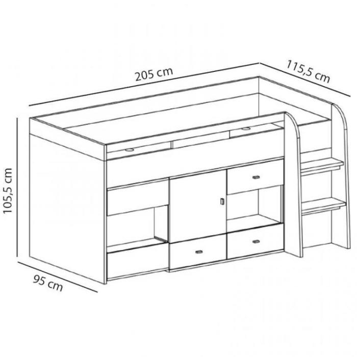 Powierzchnia spania wynosi 90x200 cm. Doskonale sprawdzi się w pokoju młodzieżowym. Łóżko do samodzielnego montażu.