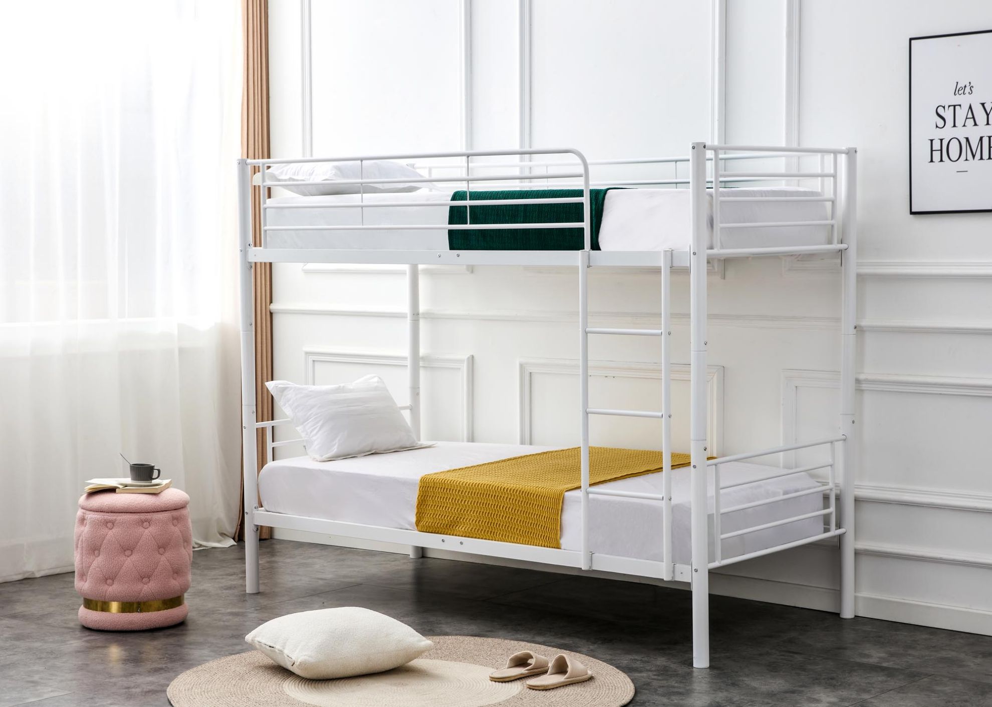 Biały kolor stali malowanej proszkowo nadaje łóżku Sztaplo lekkości i sprawia, że doskonale komponuje się z różnymi stylami aranżacyjnymi. To uniwersalne rozwiązanie, które łatwo dostosować do zmieniających się preferencji dziecięcych czy młodzieżowych.