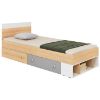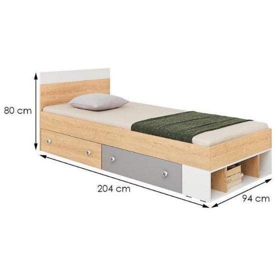 Łóżko Pixel dostępne w kolorze dąb biszkoptowy/biały lux/szary. W komplecie stelaż oraz dwie szuflady - schowek na pościel, poduszki ,czy też koce. Powierzchnia spania wynosi 90x200 cm. Doskonale sprawdzi się w pokoju młodzieżowym. W skład kolekcji wchodzą komody, regały, biurko, szafka rtv, półki oraz szafy. Meble do samodzielnego montażu.