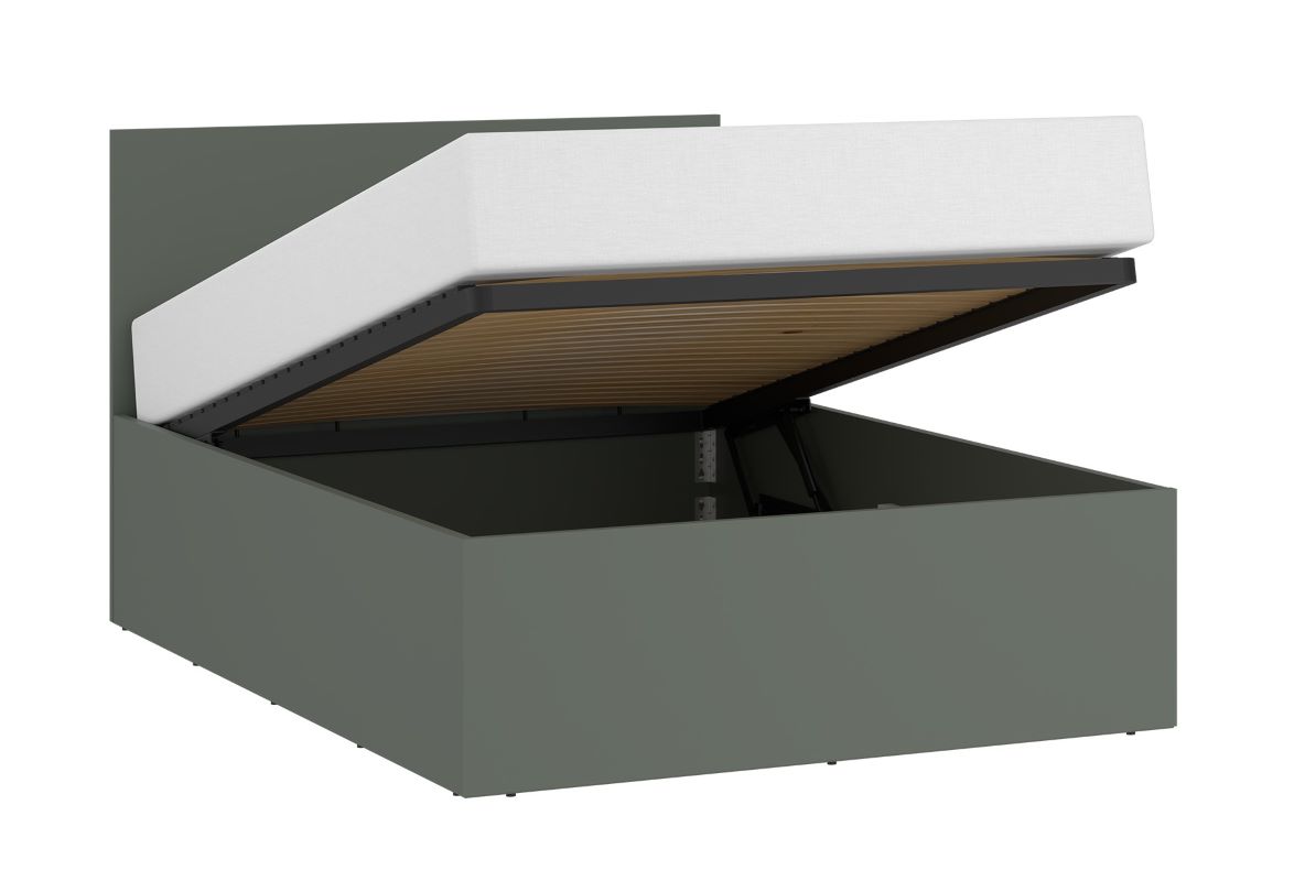 Konstrukcja łóżka Pozzi została wykonana z wysokiej jakości płyty wiórowej laminowanej w odcieniu szarozielonym. Kolor ten, inspirowany naturą, wprowadza do wnętrza spokój i równowagę, a jednocześnie doskonale współgra z modnymi akcentami drewnianymi, białymi, czarnymi lub beżowymi. Prosty zagłówek oraz brak widocznych stopek podkreślają minimalistyczny charakter bryły, który pasuje do wielu stylów – od nowoczesnego i loftowego po vintage czy boho.